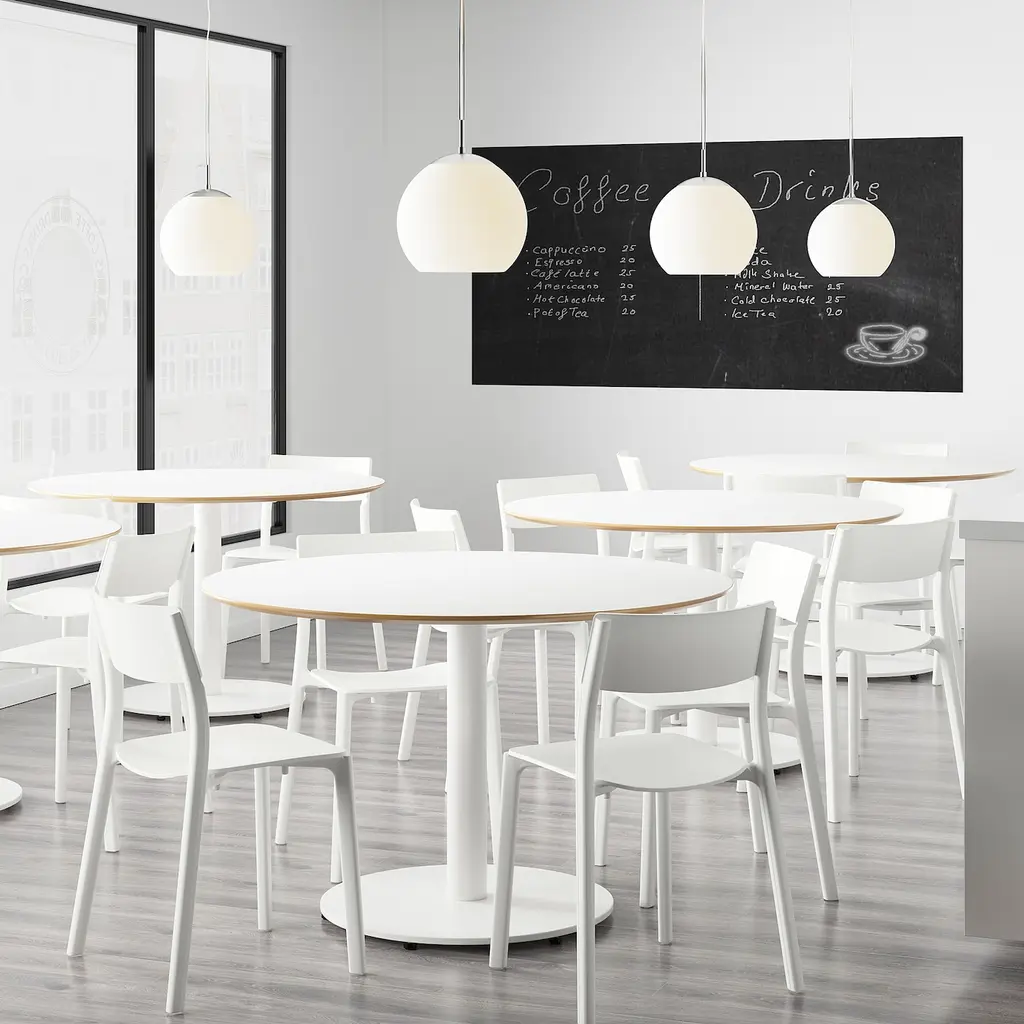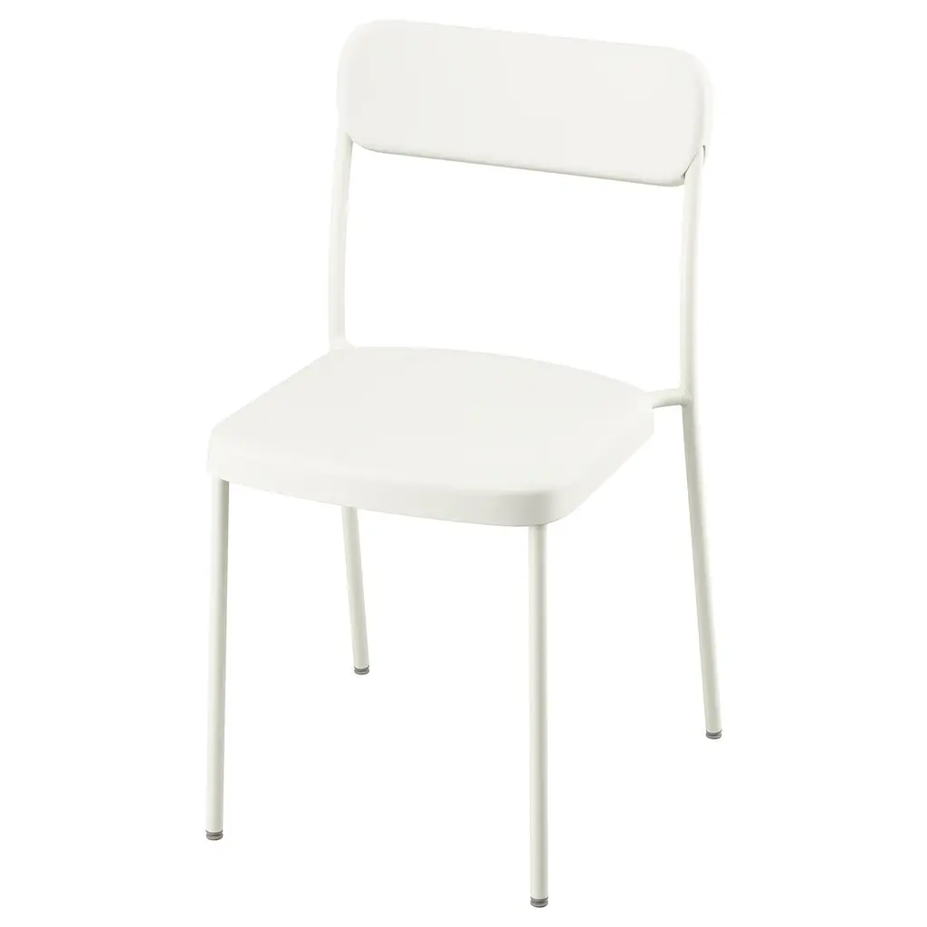 JANINGE Chair - white. You can stack the chairs, so they take less space when you're not using them. You can start using the chair immediately because it is pre-assembled. You can remove the dampers if you don't need to stack the chairs.