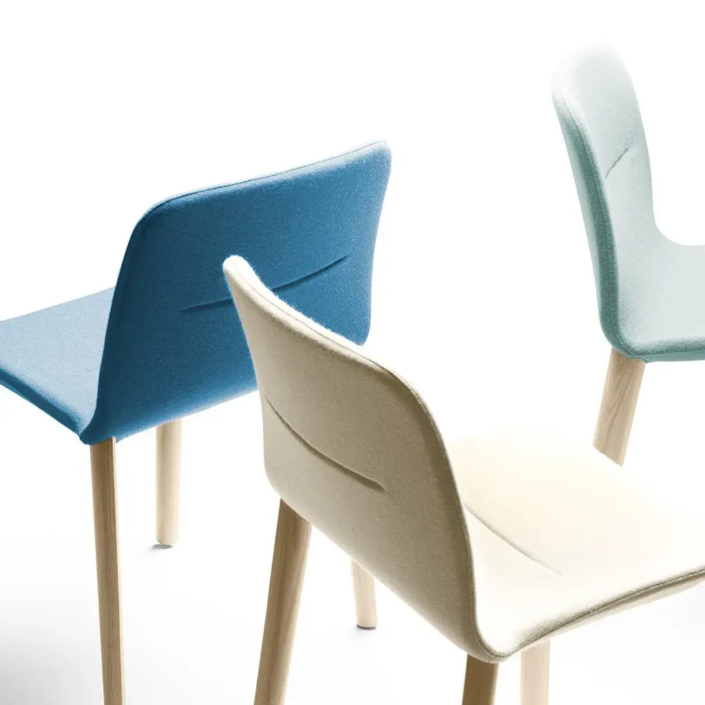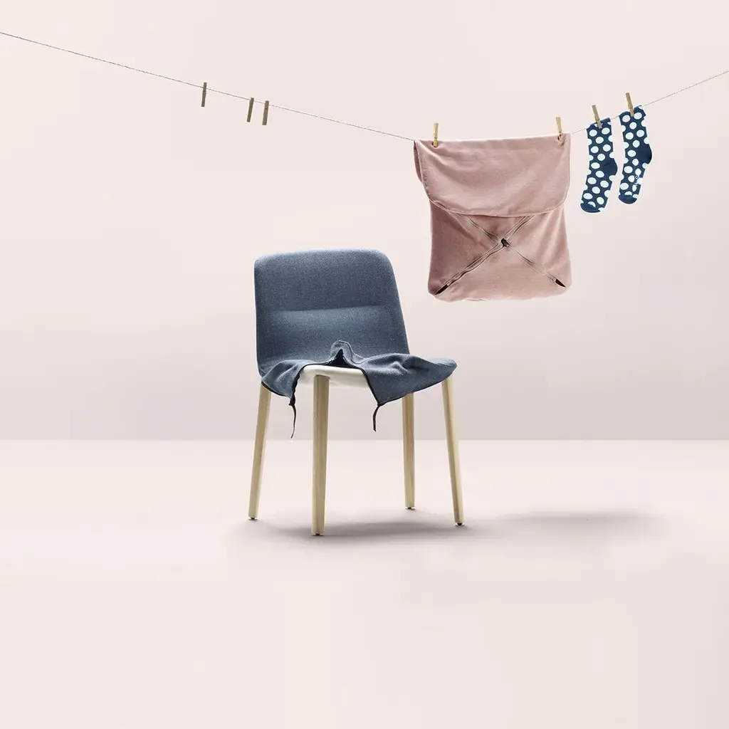 Jantzi means dress in Basque. The Jantzi chair, which is ample and comfortable, can be given a whole new look as often as you like. This stackable chair is available upholstered and in natural or stained wood. A new technically challenging version with armrests is also available.