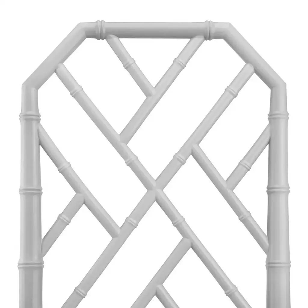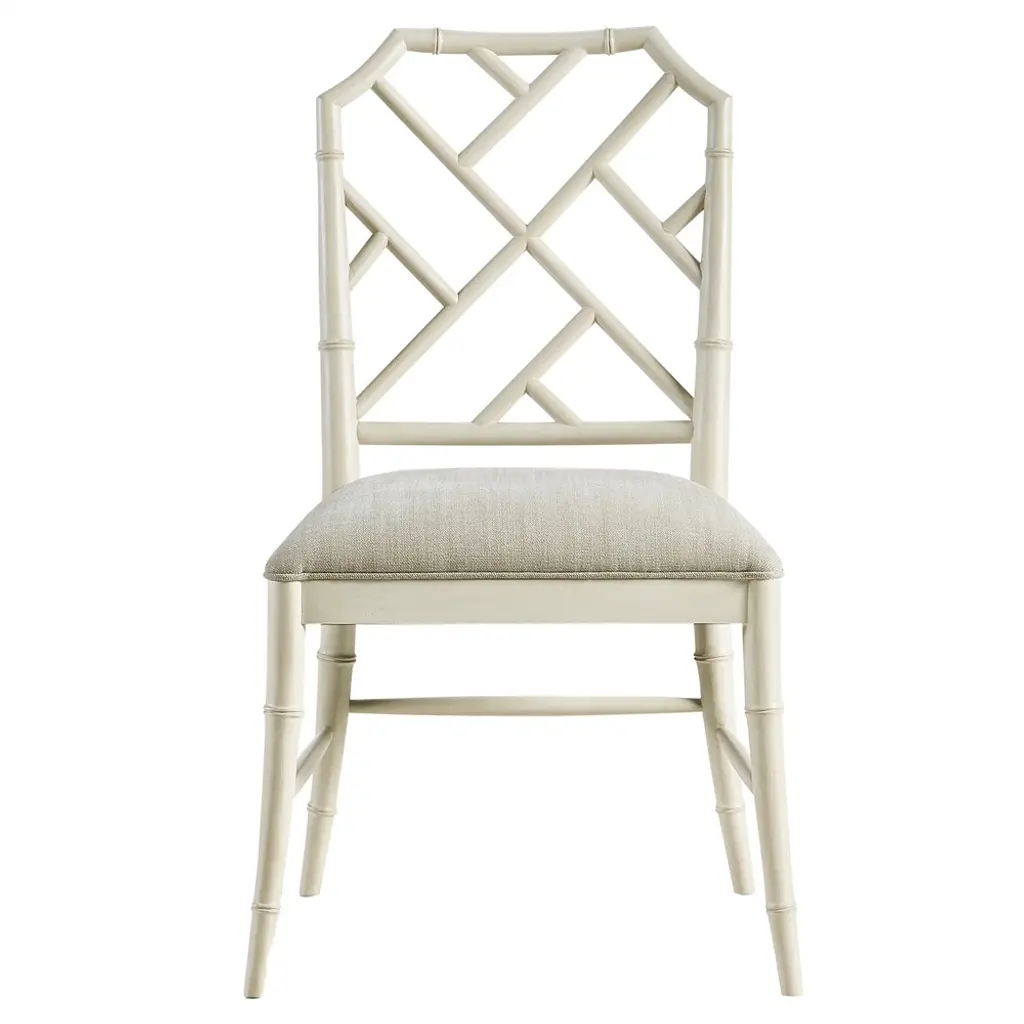 The Jardin Collection revisits one of Villa & House’s beloved design motifs, inspired by classic Chinoiseries. A rich lacquered finish adds to the sophistication of the design, which sees solid mahogany artisanally hand-carved to resemble bamboo. Decorative lattice fretwork, diagonal stretchers, and gently tapered legs add visual and structural interest while maintaining an air of elegant simplicity. Completed with a linen drop in cushion, the Jardin Side Chair feels at once relaxed and undeniably upscale. Either at a desk or dining table, this chair invites you to sit back in style.