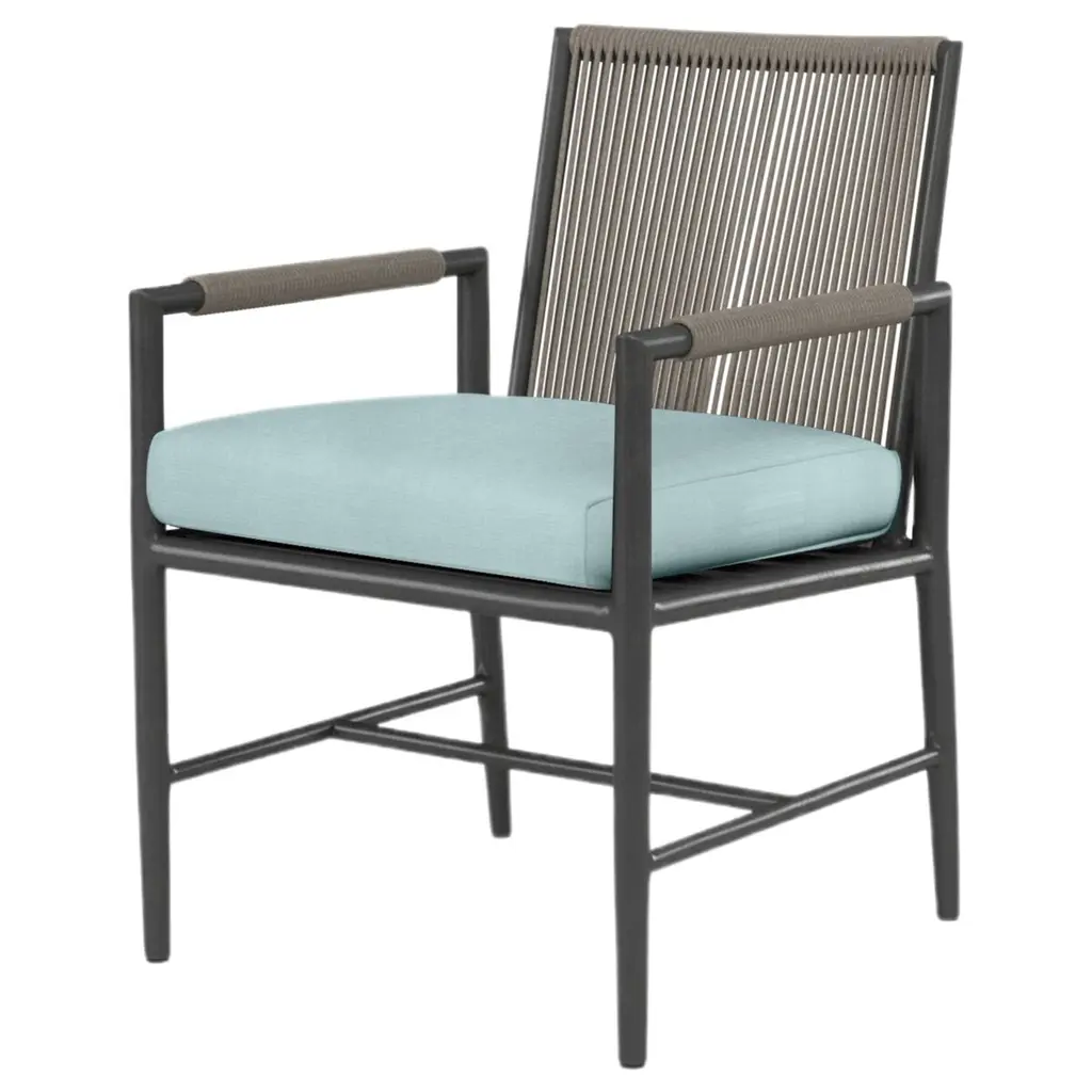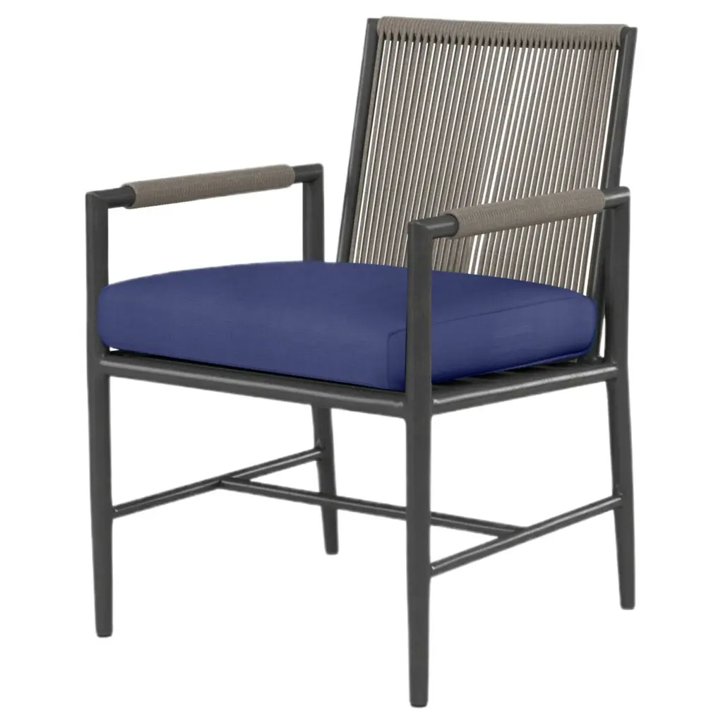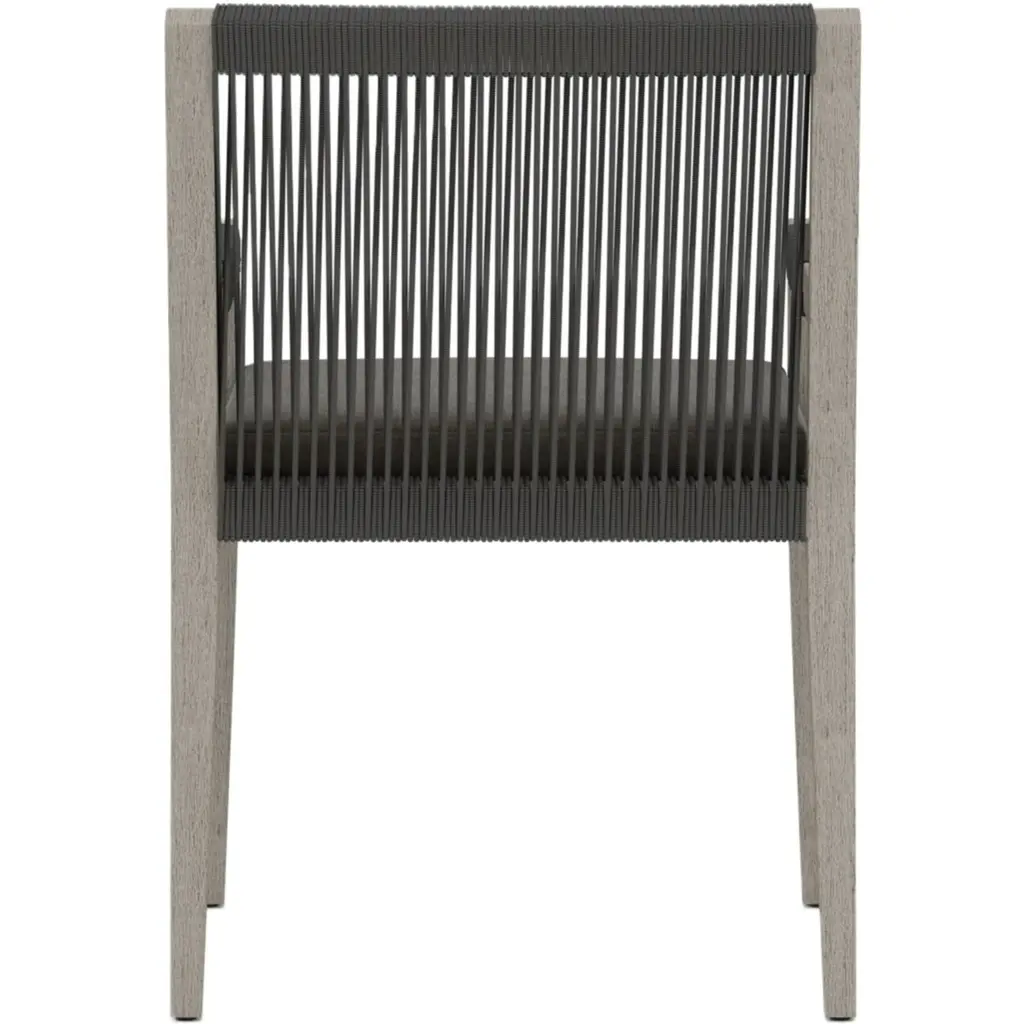 Modern materials craft a stylish silhouette for outdoor dining. Teak forms a clean frame for UV-resistant and water-repellent Sunproof fabric, ensuring durability and comfort. This chair is designed to withstand the elements, though it is recommended to cover or store indoors during inclement weather. Enhance your outdoor dining experience with this elegantly designed armchair.