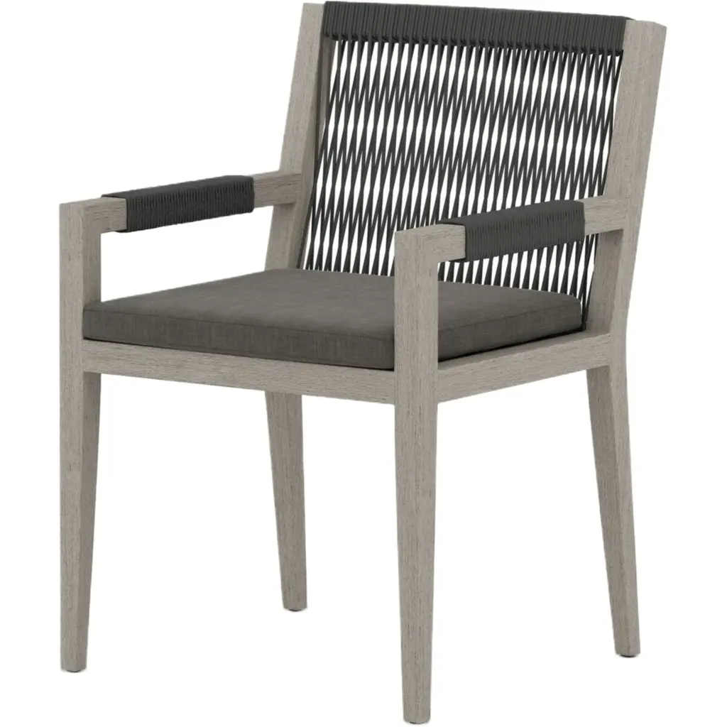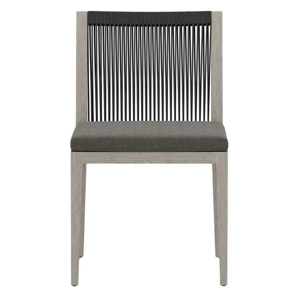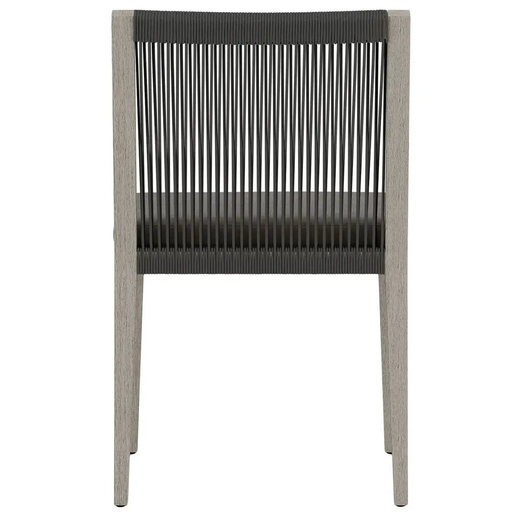 Dine in style, indoors and out with the Jasper Outdoor Dining Chair. Crafted with solid teak framing, this chair features modern rope detailing and UV-resistant seat cushioning, ensuring comfort and durability. Its elegant design is perfect for any outdoor setting. Remember to cover or store indoors during inclement weather and when not in use to maintain its pristine condition. Enhance your outdoor dining experience with this sophisticated piece.