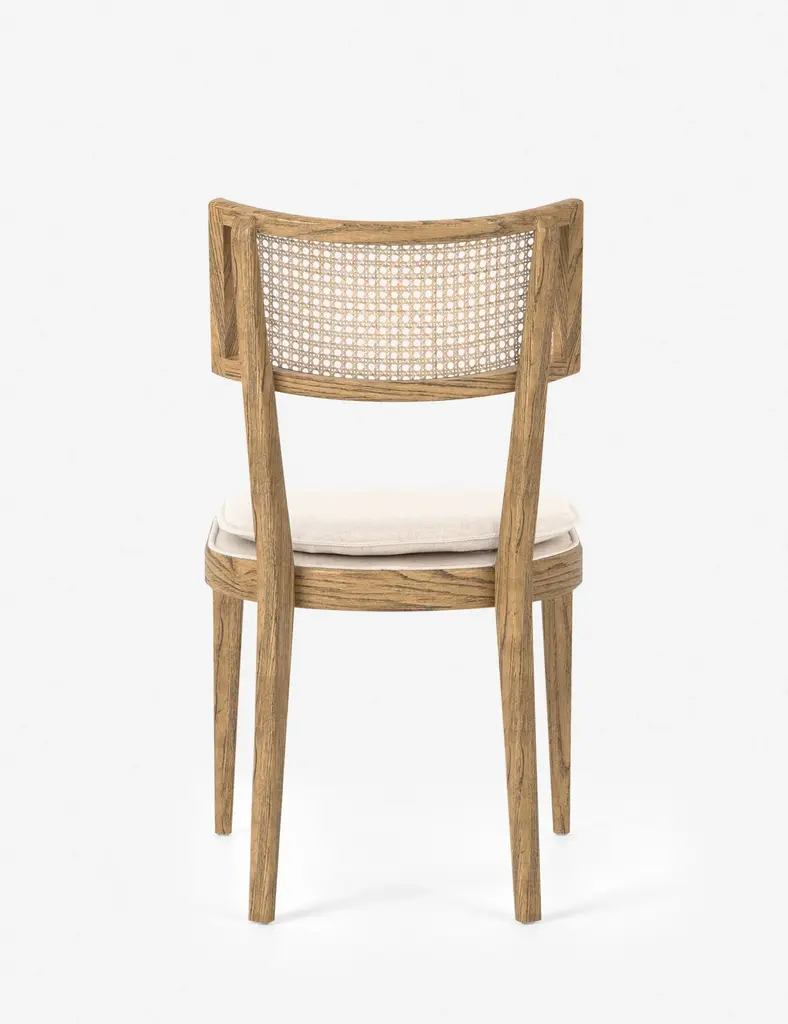 Featuring a woven cane back, this dining chair brings an airy, vintage feel to your dining room or kitchen. We love the natural texture contrast of the wood and cane, with an upholstered linen cushion for a soft touch. Style this dining seat in a tailored set for a table that feels laid-back yet refined.