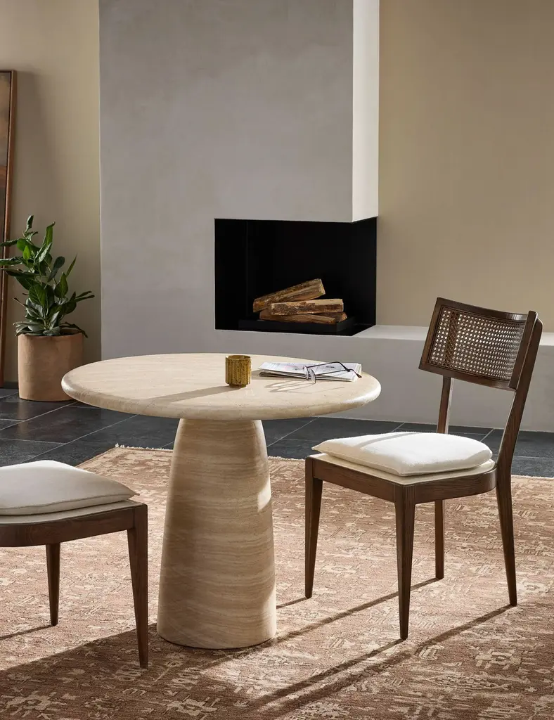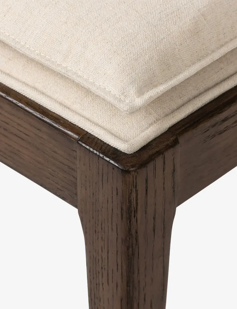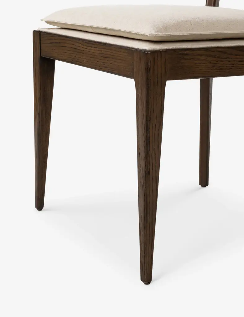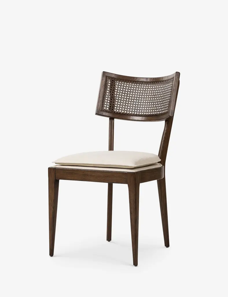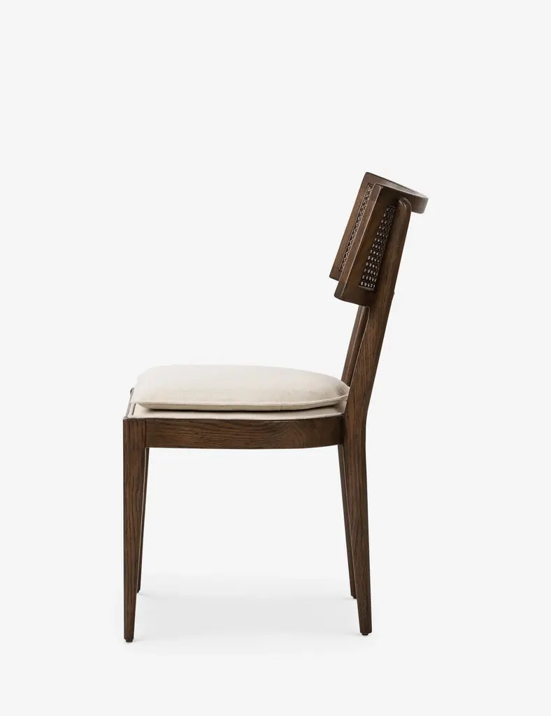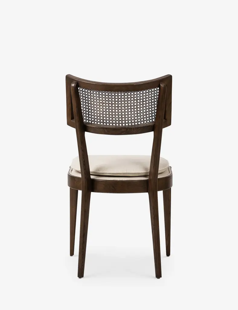 Featuring a woven cane back, this dining chair brings an airy, vintage feel to your dining room or kitchen. We love the natural texture contrast of the wood and cane, with an upholstered linen cushion for a soft touch. Style this dining seat in a tailored set for a table that feels laid-back yet refined.