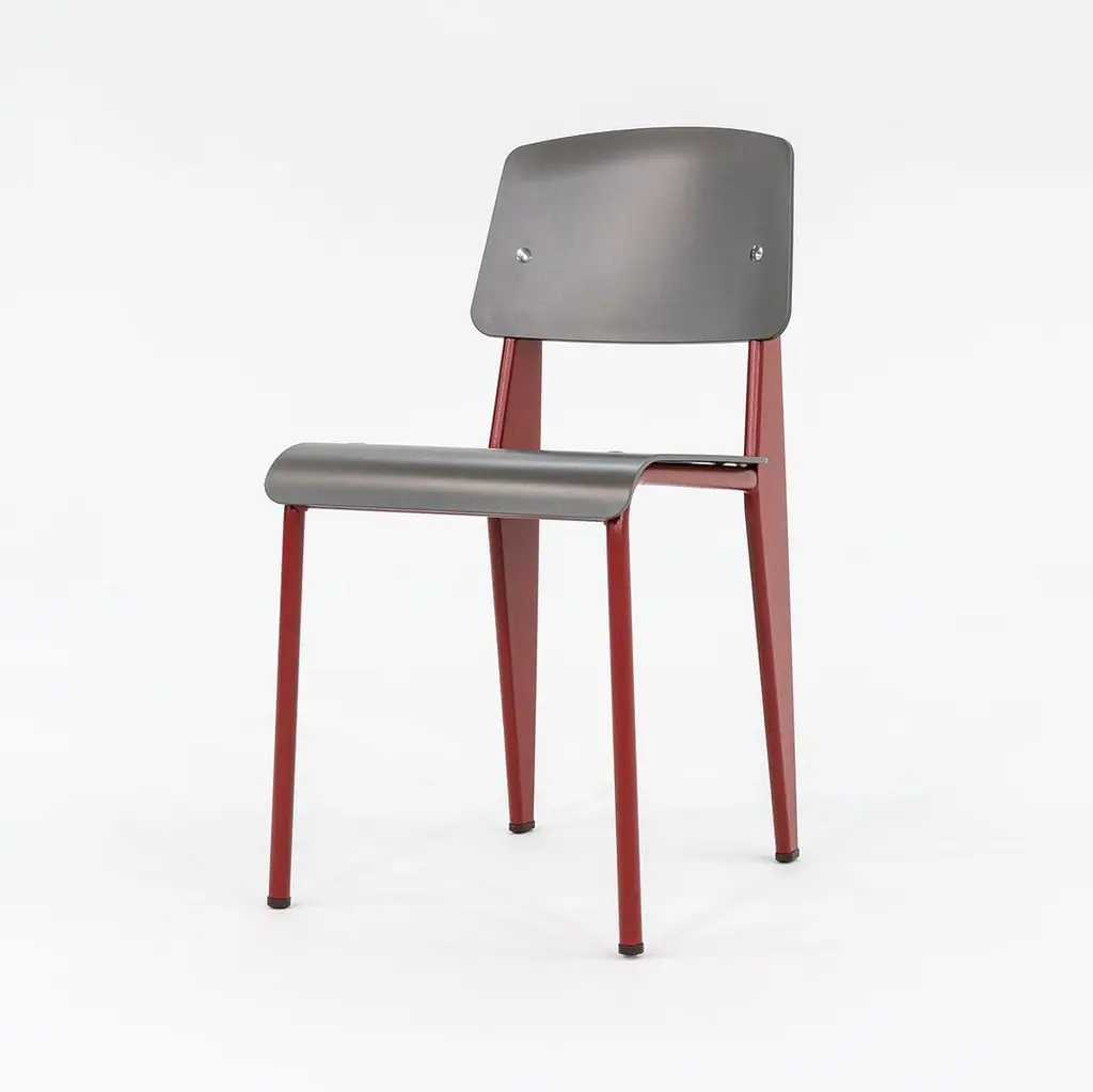 These are Standard SP Dining Chairs, Model 204, initially designed in 1934 by Jean Prouve. These particular pieces were produced circa 2023 and they are brand new in their original boxes. The listed price includes one chair, and we have several available for purchase. Their bases are formed of molded steel which has been powder coated in Japanese red, and their seats and backs are formed from Basalt Grey plastic. The Vitra sticker is present on the bottom of each chair. Each chair measures 19.25 inches deep, 16.5 inches wide, and is 32.25 inches tall. They have a seat height of 18.25 inches, and a seat depth of 17.75 inches. These chairs are brand new in their boxes and have never been used, and are therefore in superb condition. Please see photos. Genuinely faulty goods will be replaced or money refunded on a case by case basis, however we must be advised of any faulty goods upon receipt of the item. It is the customer's responsibility to pay for return shipping and ship the item back to us. If the item is found to be faulty, we will also refund the postage cost. If there is no damage to the item, but a return is approved, the buyer will be responsible for both the initial and return shipping cost. It is at our discretion to refuse the refund of undamaged goods. If an order is placed and you would like to cancel the order, please notify us immediately. Any refunds will be processed via the same means that payment was made.