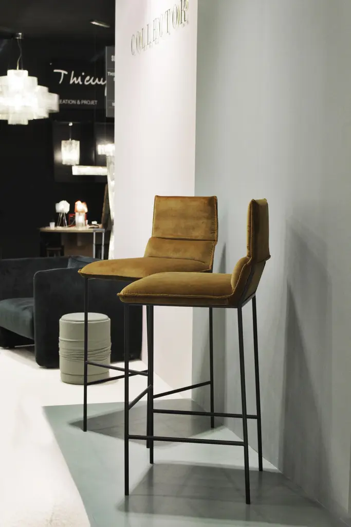 Jeeves - 21st century designed by Collector Studio bar chair fabric mustardThe Jeeves series features sophisticated details and great versatility.The elegant range of fabrics and leathers, along with a carefully chosen color palette of metal finishes, makes these chairs and stools a strong choice for your dining room, bar and office space.Collector brand was born and Portugal and aims to be part of daily life by fusing furniture to home routines and lifestyles. The company designs its pieces with the intention to embrace diverse styles and to blend in inside any contemporary setting.