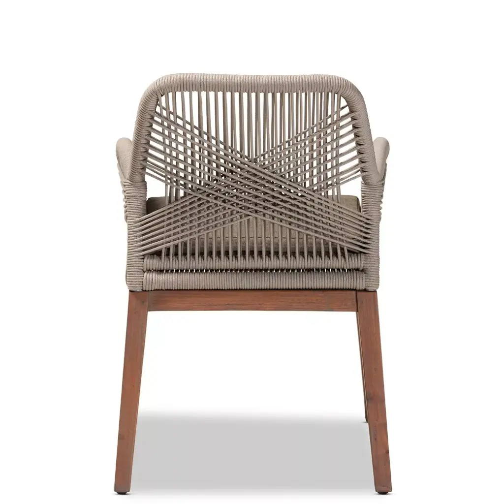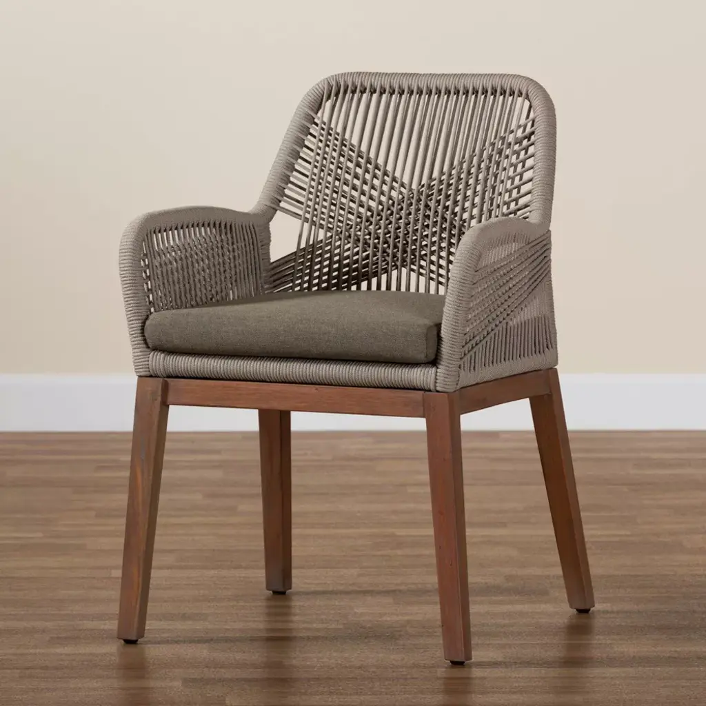 Bali & Pari Jennifer Woven Rope Mahogany Dining Armchair Gray/walnut: Upholstered, No Assembly, Polyester/cotton