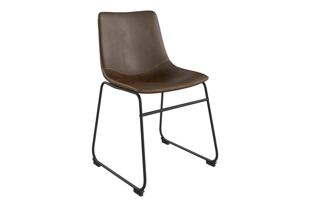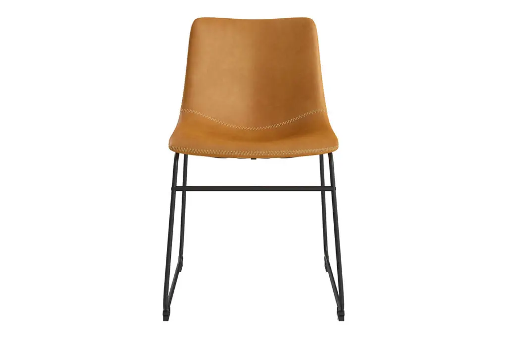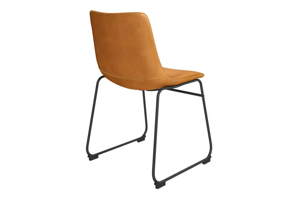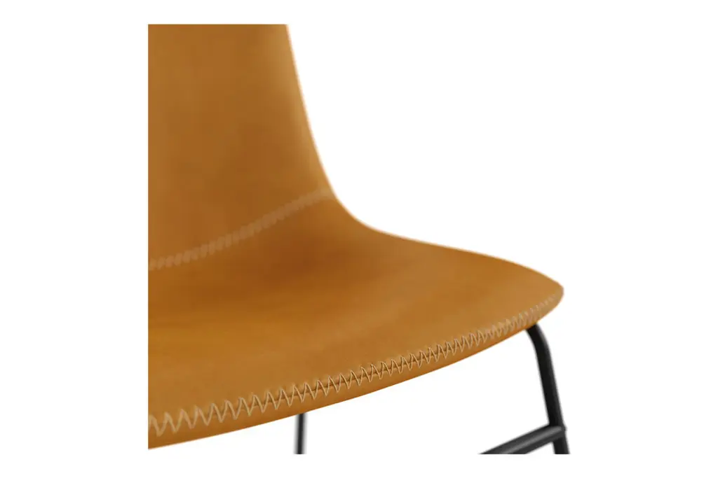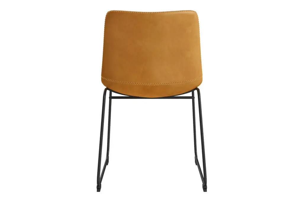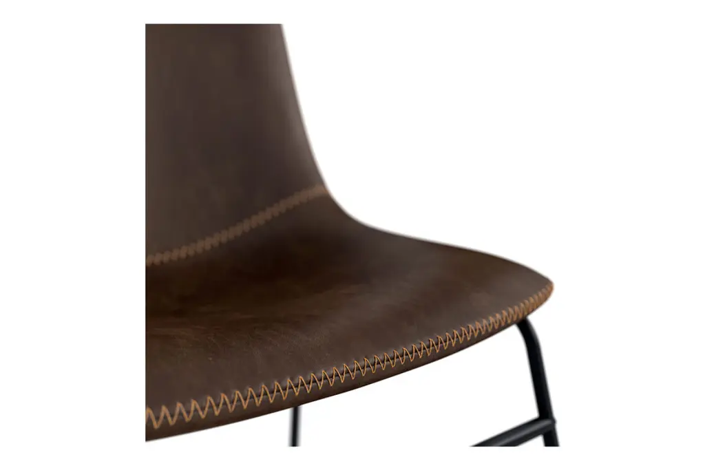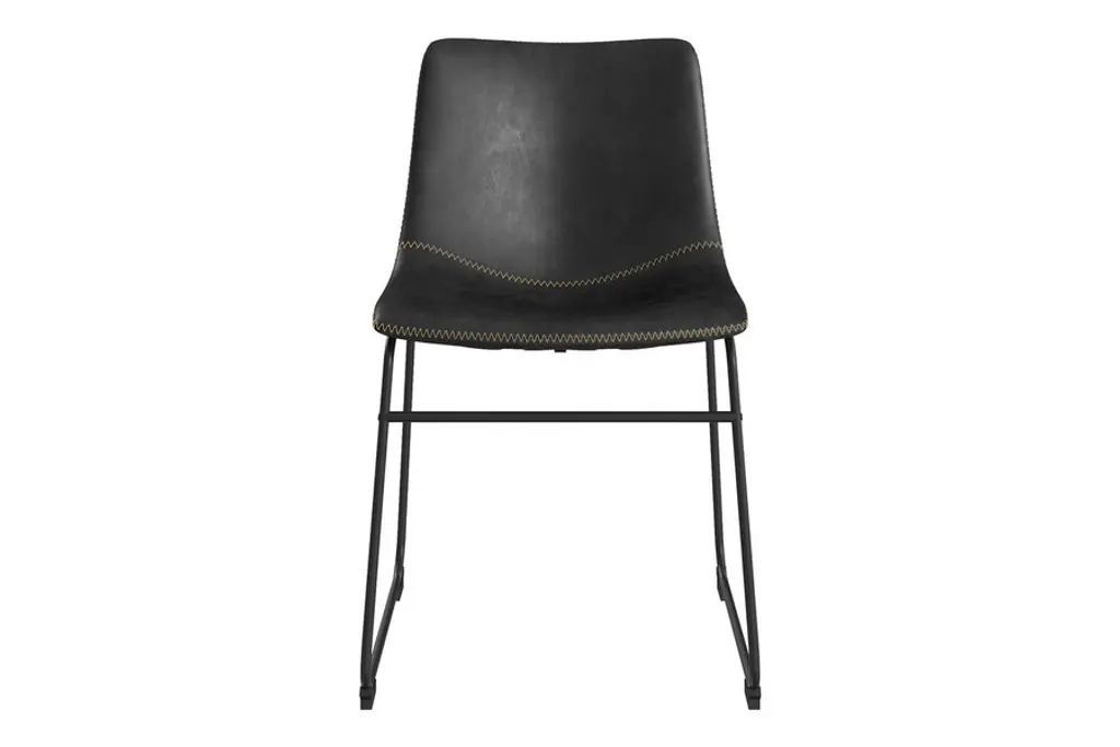 The Agnes Dining Chair is bold & sleek and designed for everyday dining. A Scandinavian inspired design, styled in vintage performance leatherette, the Agnes will fit right at home in your color choice. Choose from a variety of on-trend colorways that combine chic, elegant seat finishes with contrasted zig-zag accent stitching. The seat's curved form-fitting contours are supported by a sturdy metal base, proving that the Agnes is comfortable and built to last.