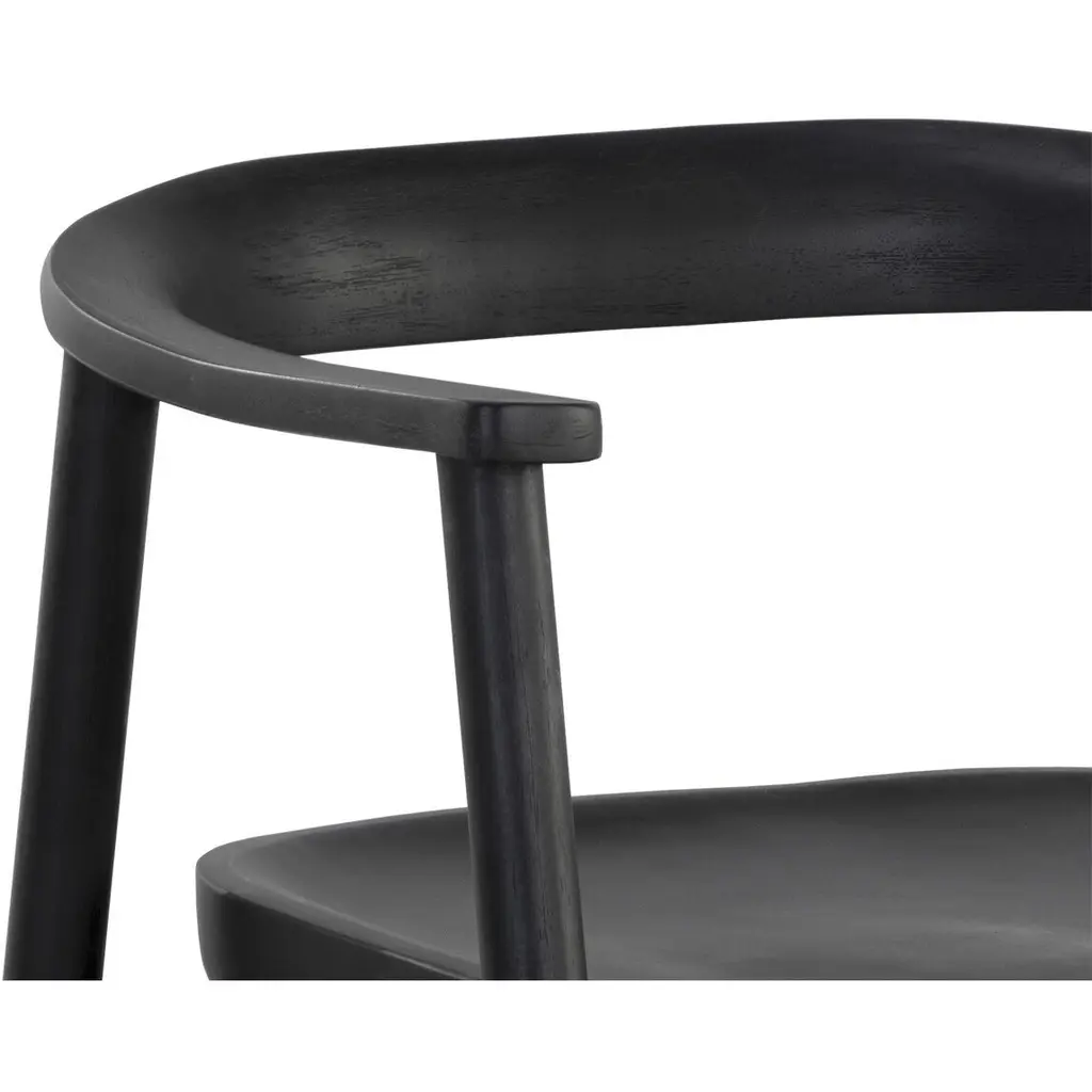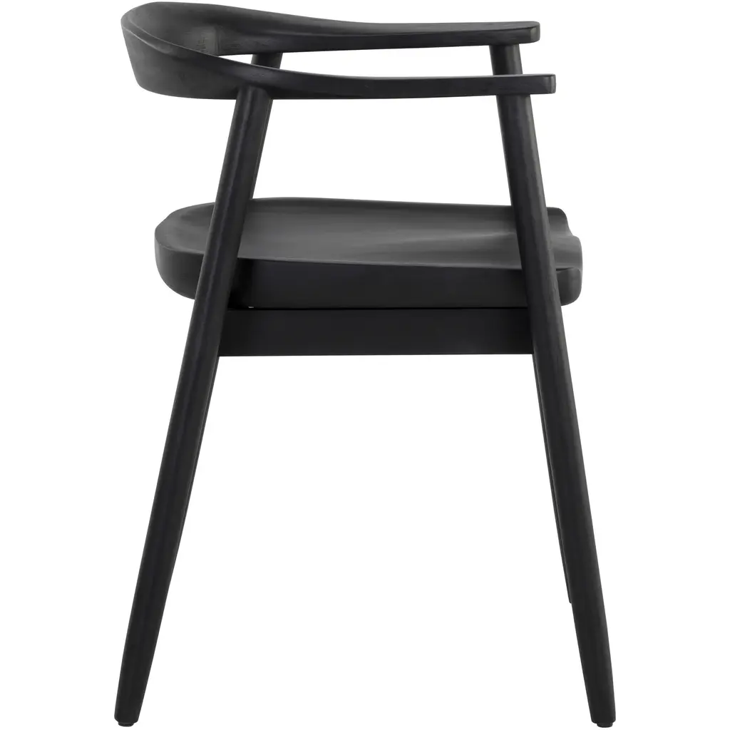 An alluring mid-century dining armchair that embraces the beauty of simplicity. Expertly crafted from black acacia wood for a sleek look. As wood is an organic, porous material, these pieces will contain natural variation of texture and may also exhibit fine indentations and cracks. Wood pieces will also display a disparity of colour and grain, and visible knots and burls that add to the character of each piece.