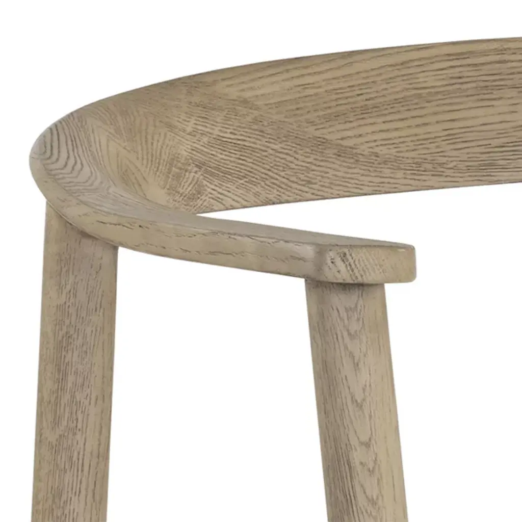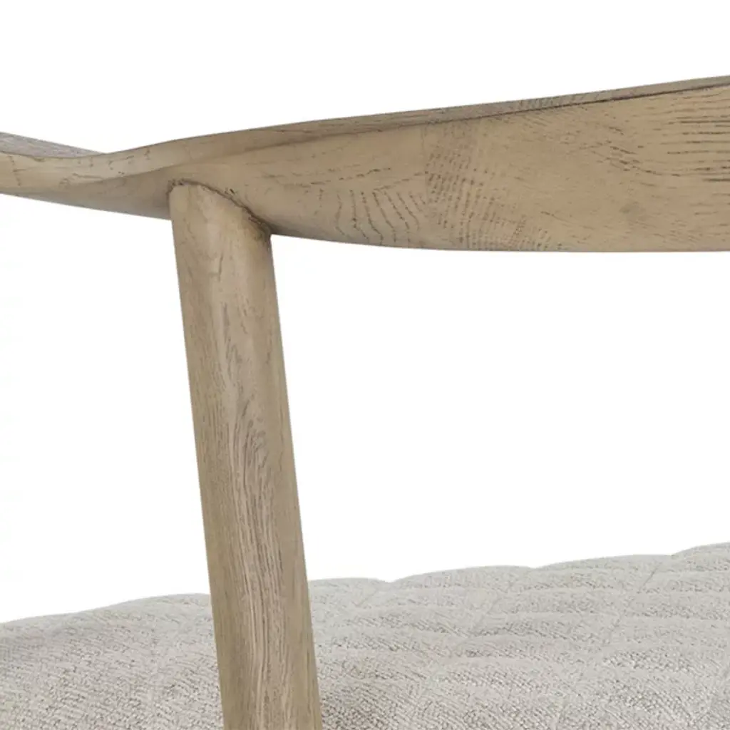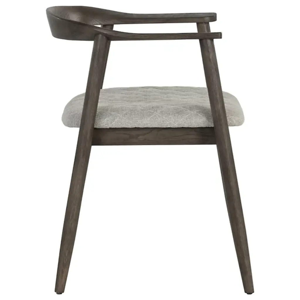 The Jeremy Dining Armchair from Sunpan offers the timeless beauty of mid-century design and celebrates the art of simplicity. Its comfortable quilted cushion, dressed in belfast heather grey fabric, invites you to linger at the table. The chair is gracefully supported by a dark brown solid oak wood frame. Embrace the uniqueness of organic, porous wood; each piece boasts natural texture variations, fine indentations, and the character of knots and burls.