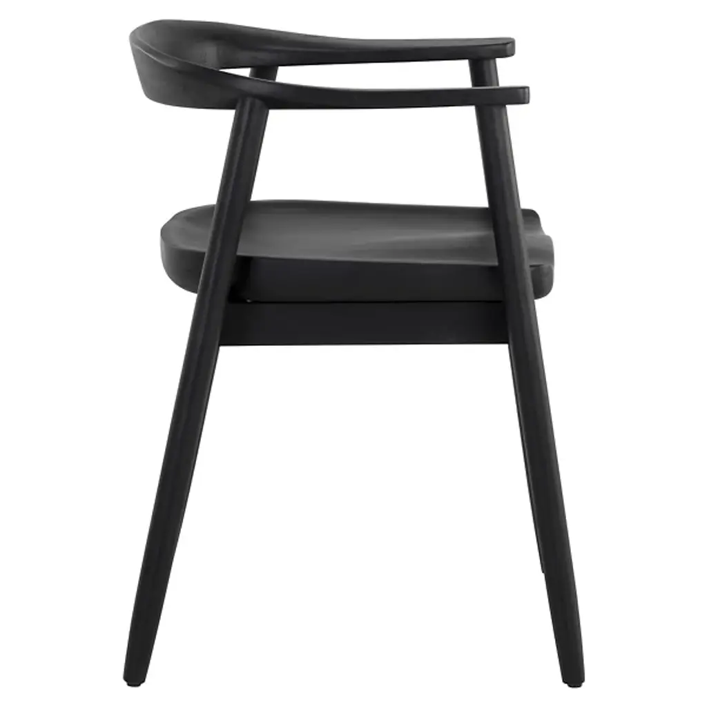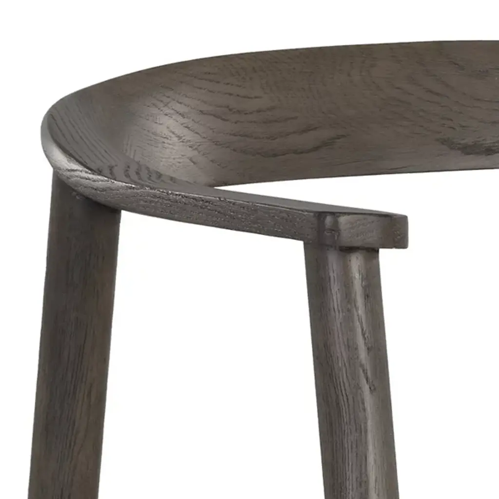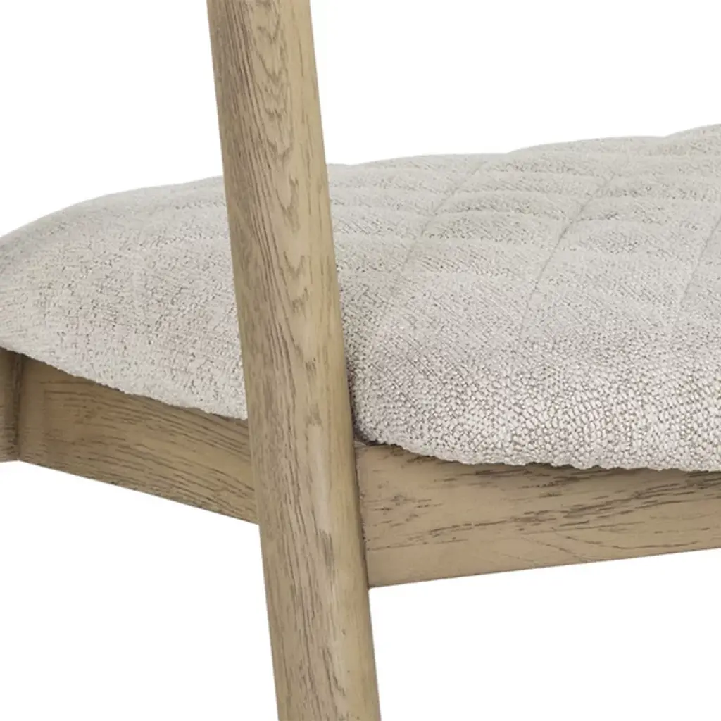 The Jeremy Dining Armchair from Sunpan offers the timeless beauty of mid-century design and celebrates the art of simplicity. Its comfortable quilted cushion, dressed in belfast heather grey fabric, invites you to linger at the table. The chair is gracefully supported by a dark brown solid oak wood frame. Embrace the uniqueness of organic, porous wood; each piece boasts natural texture variations, fine indentations, and the character of knots and burls.
