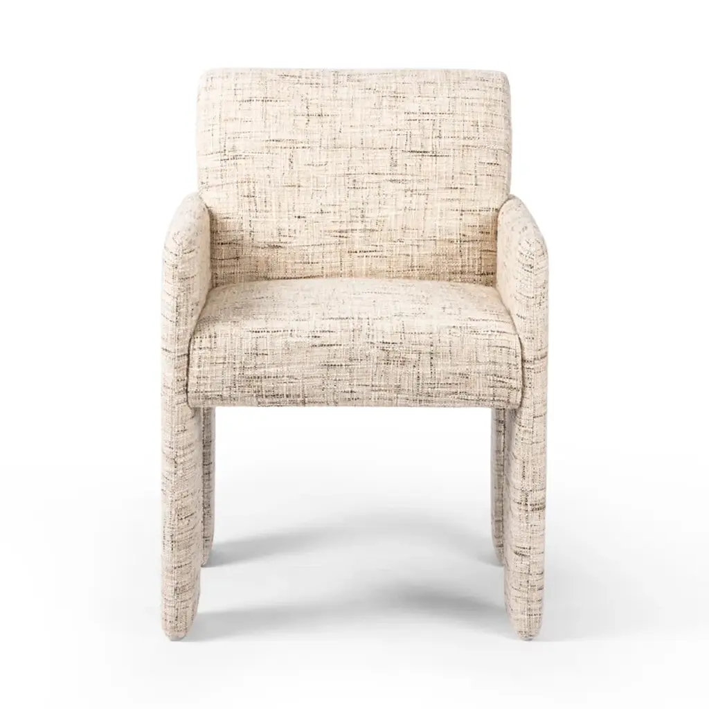 Sculpted lines and allover performance upholstery add a stylish edge to this dining chair. The shapely silhouette will elevate the tone of your dining room or living space with both modern appeal and a practical touch.
