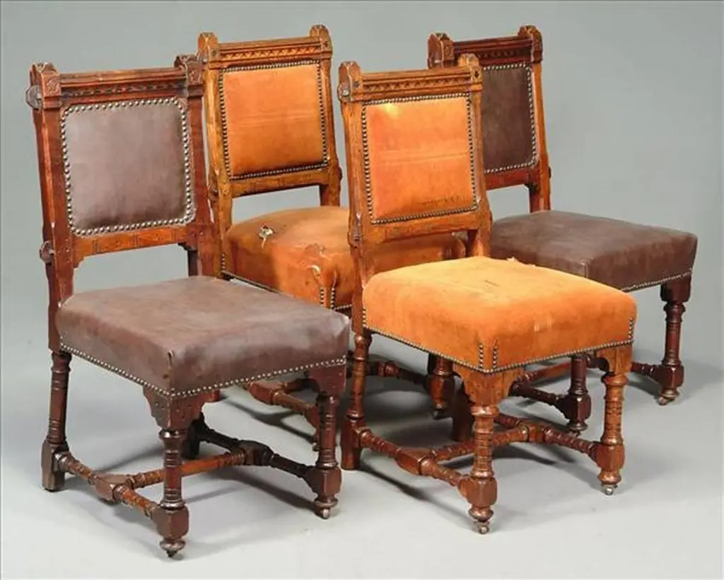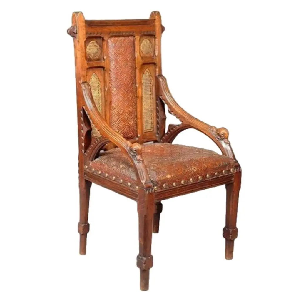 John Pollard Seddon A Pair Of Gothic Revival Oak Dining Chairs. 4 More Available