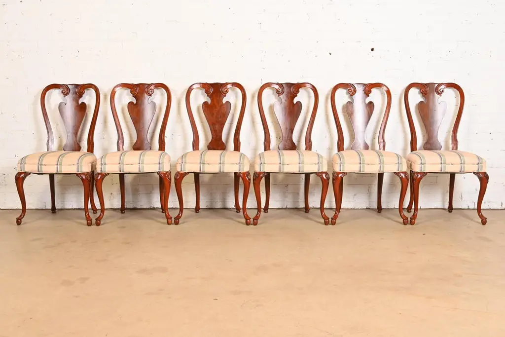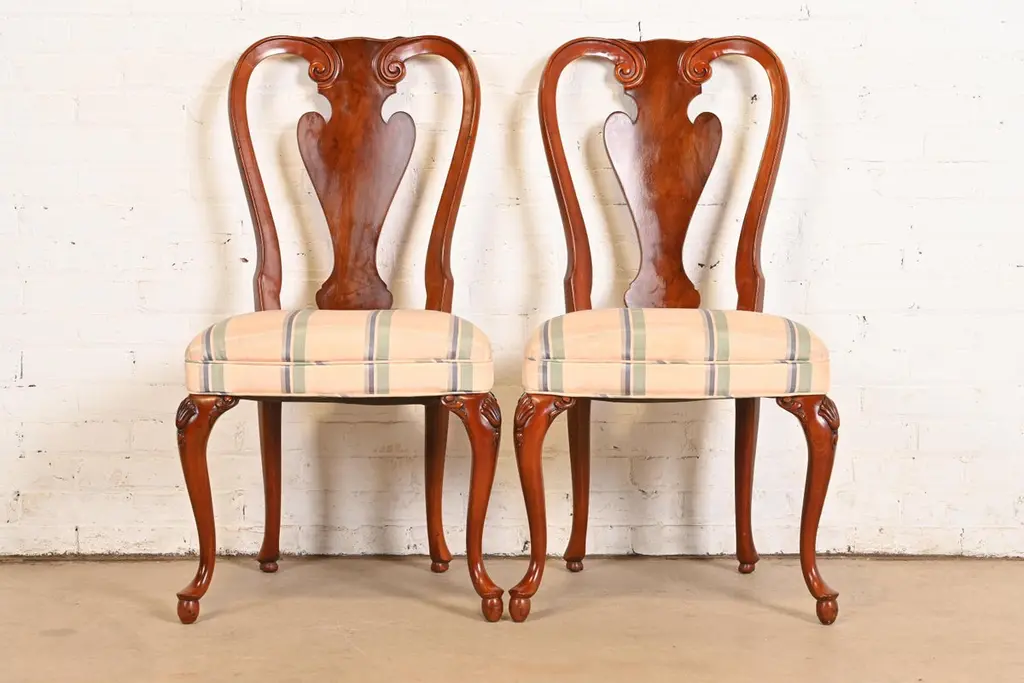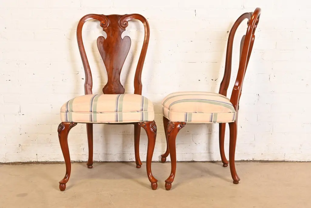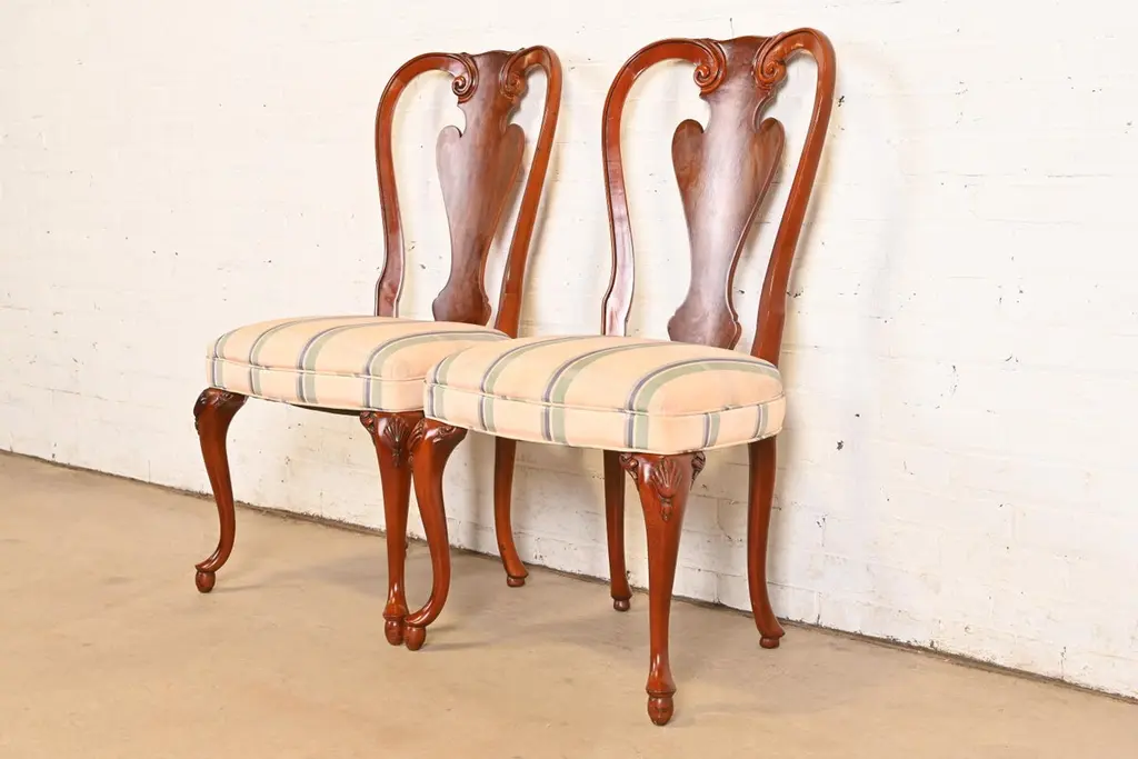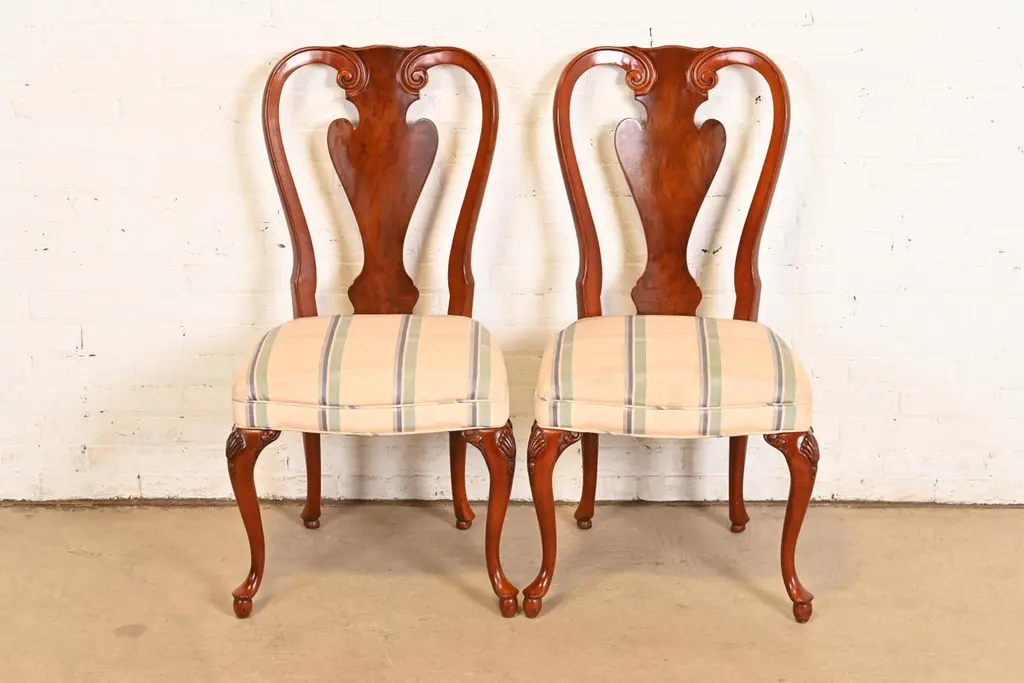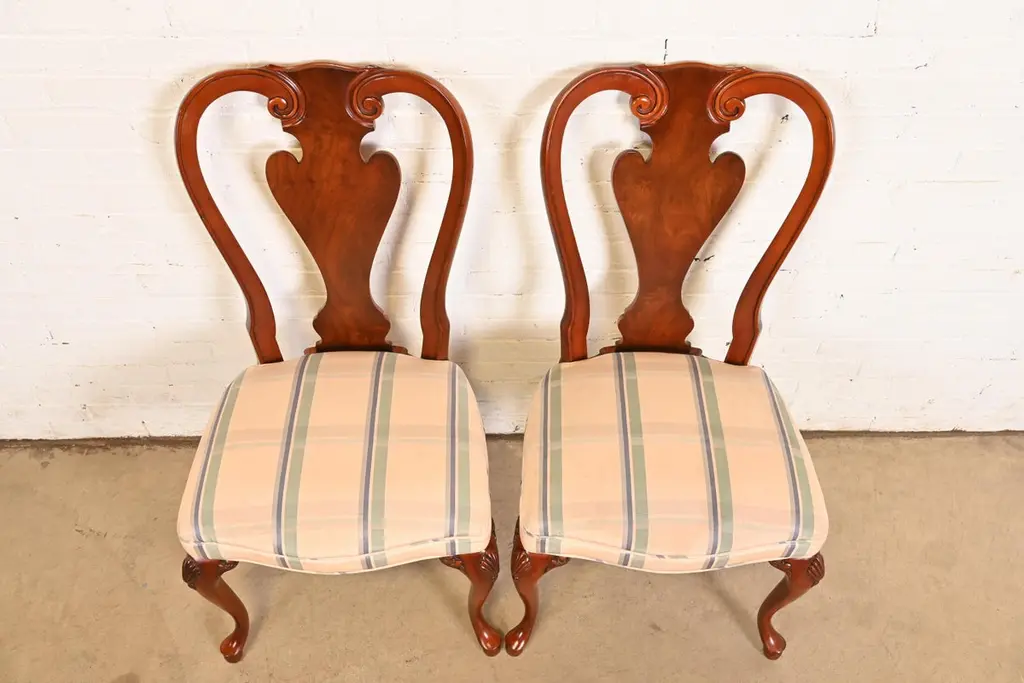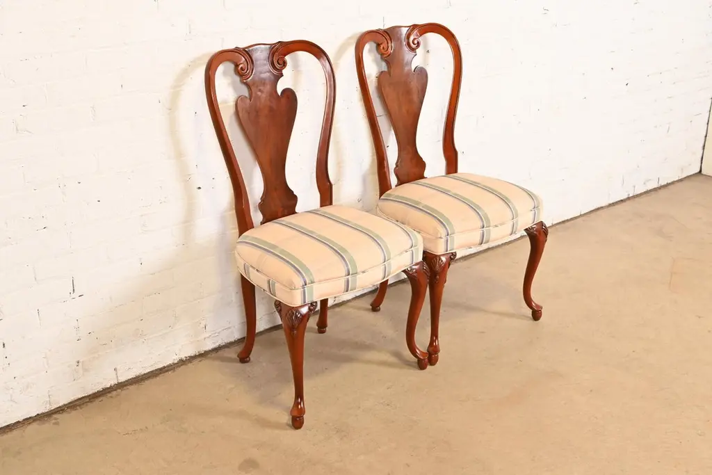 John Widdicomb Queen Anne Solid Mahogany Dining Chairs, Pair