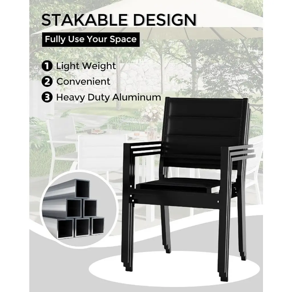 Jojoka 4 Pieces Patio Dining Chairs,aluminum Frame Stackable Patio Chair With Armrest And Textilene Fabric,black