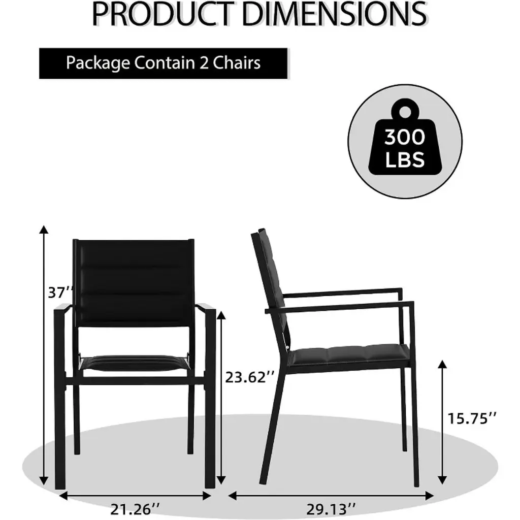 Jojoka Aluminum Stackable Patio Dining Chairs Set Of 2,stacking Outdoor Dining Chairs With Textilene Farbic,black