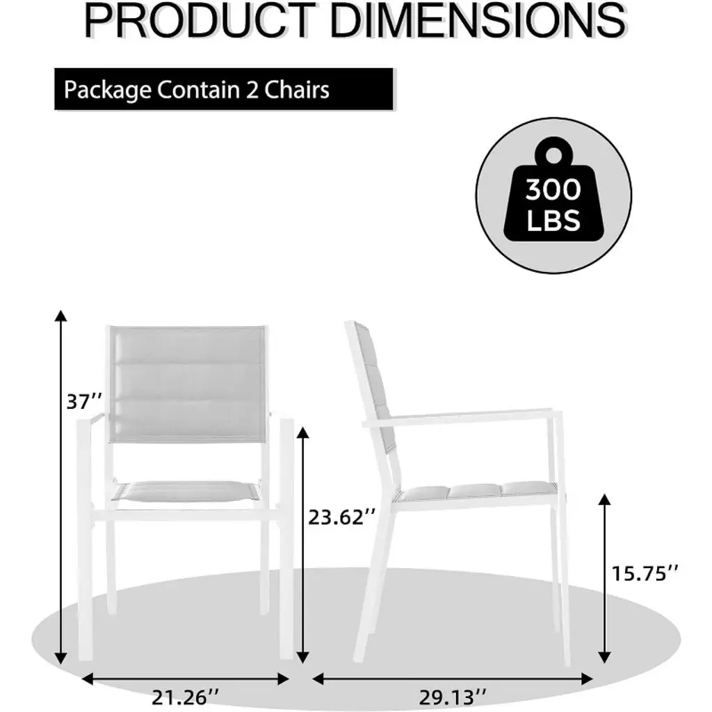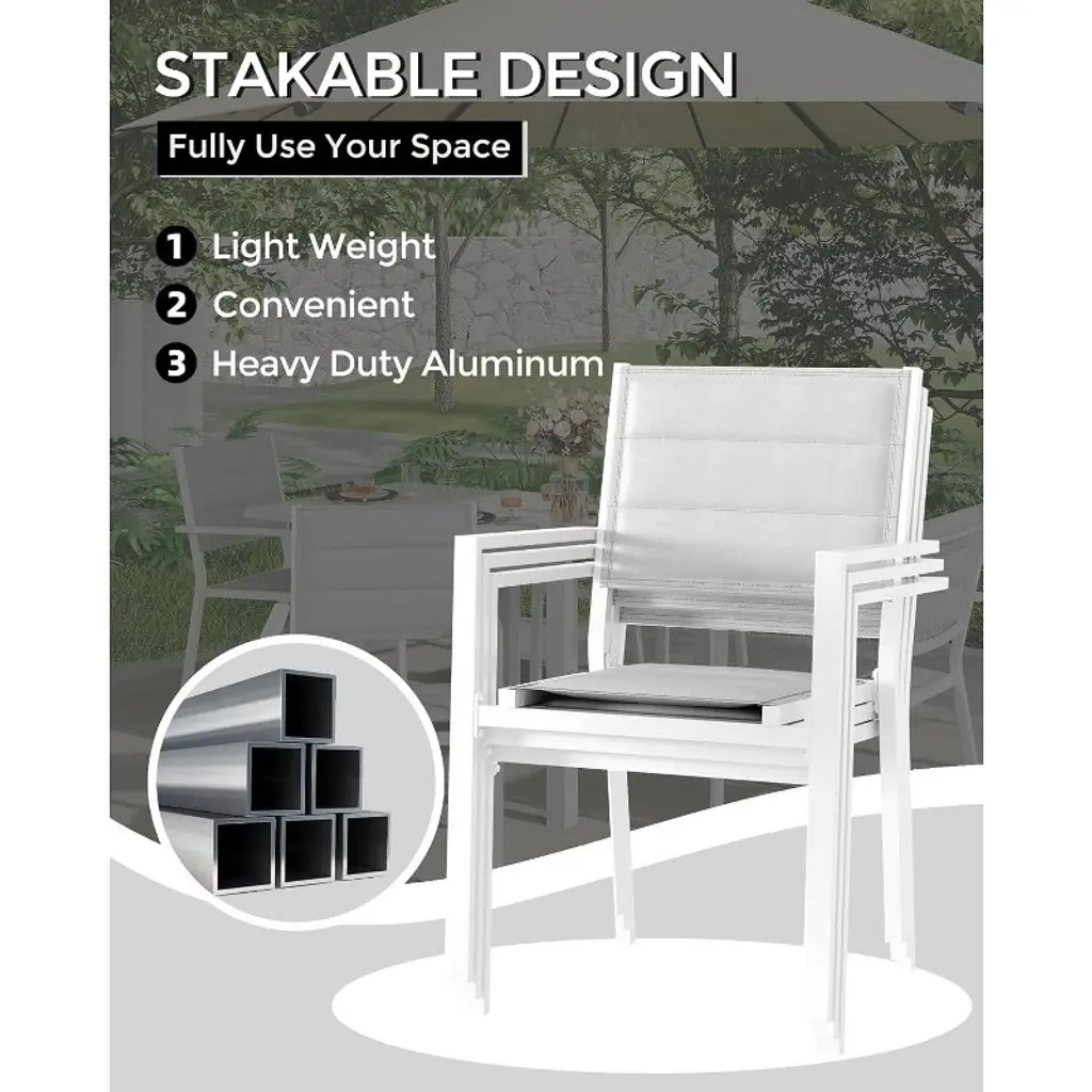 Jojoka Aluminum Stackable Patio Dining Chairs Set Of 2,stacking Outdoor Dining Chairs With Textilene Farbic,white