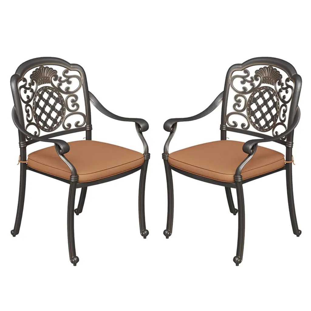 Jojoka Patio Dining Chairs Set Of 2,aluminum Outdoor Chairs With Removable Cushions,armrest,patio Seating For Garden,brown