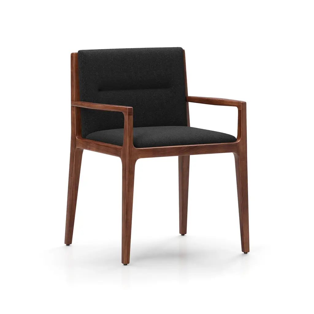 A study in serene harmony, the Jona Dining Armchair from Stellar Works is a sophisticated and minimalist design from Yabu Pushelberg. This elegant armchair is built on a minimalist solid wood frame, complemented by upholstered panels that add depth and comfort. The open posture creates an inviting seat, with generous proportions that welcome all to the table. A fusion of sculptural craftsmanship and refined simplicity, it’s a confident and memorable choice for any contemporary interior. Highlights: