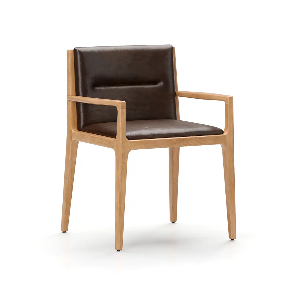 A study in serene harmony, the Jona Dining Armchair from Stellar Works is a sophisticated and minimalist design from Yabu Pushelberg. This elegant armchair is built on a minimalist solid wood frame, complemented by upholstered panels that add depth and comfort. The open posture creates an inviting seat, with generous proportions that welcome all to the table. A fusion of sculptural craftsmanship and refined simplicity, it’s a confident and memorable choice for any contemporary interior. Highlights: