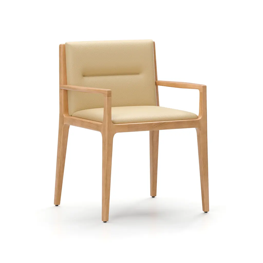 A study in serene harmony, the Jona Dining Armchair from Stellar Works is a sophisticated and minimalist design from Yabu Pushelberg. This elegant armchair is built on a minimalist solid wood frame, complemented by upholstered panels that add depth and comfort. The open posture creates an inviting seat, with generous proportions that welcome all to the table. A fusion of sculptural craftsmanship and refined simplicity, it’s a confident and memorable choice for any contemporary interior. Highlights: