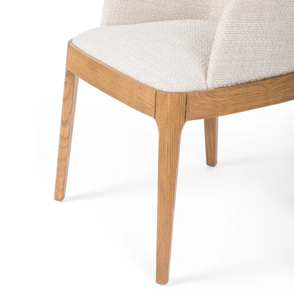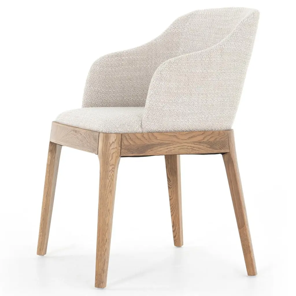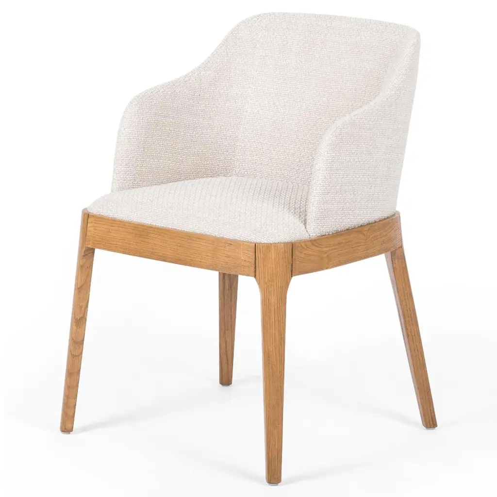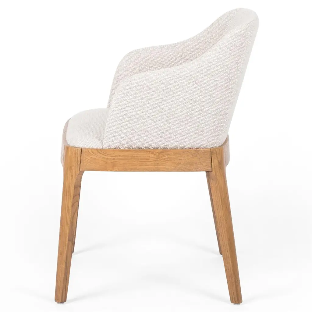 Jose Mid Century Cream Performance Brown Wood Dining Arm Chair