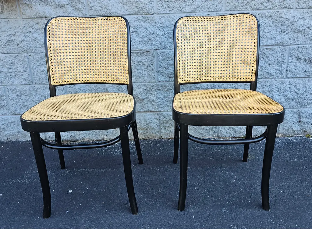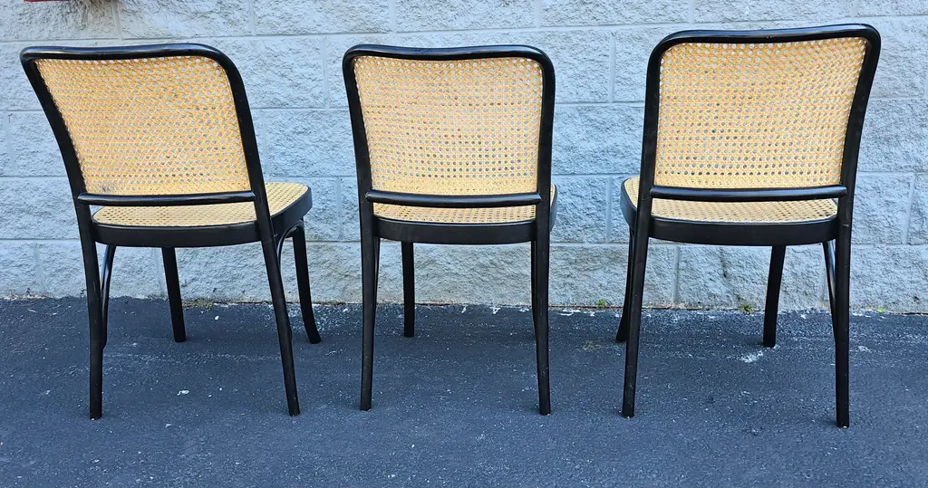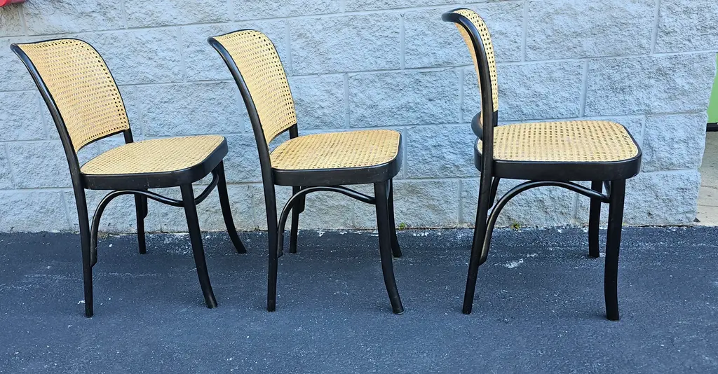 Mid-20th Century Josef Hoffmann For FMG Poland ebonized bentwood and Cane chair. Newer caning. Priced per item.