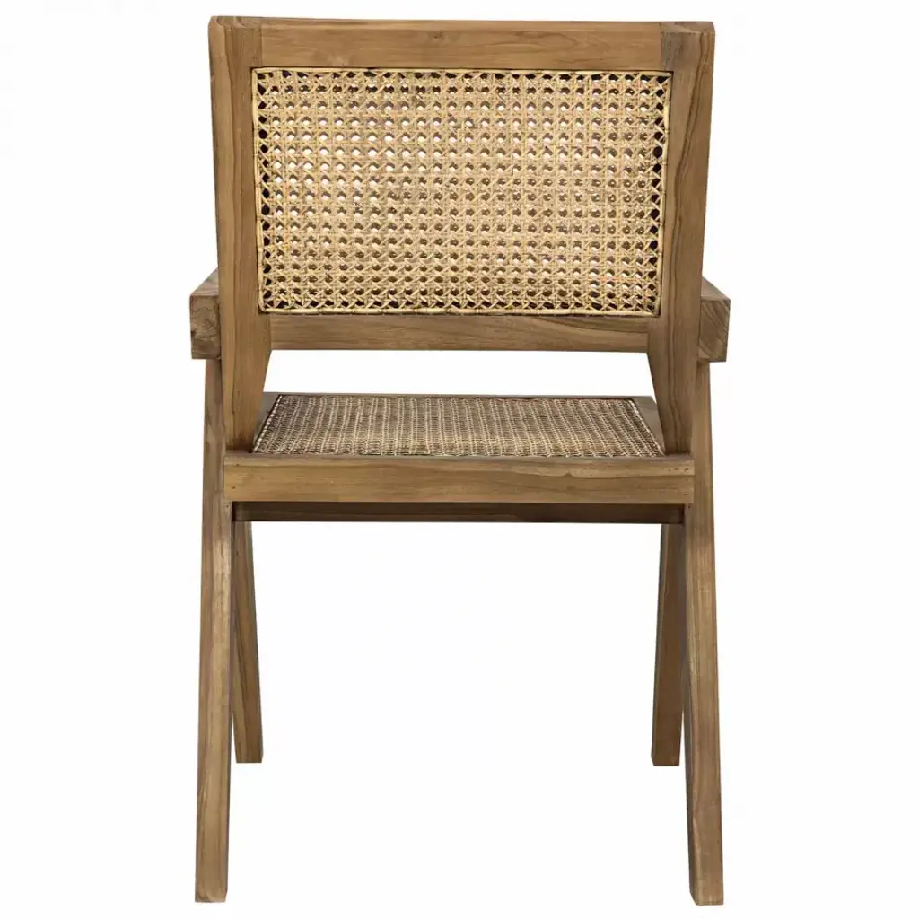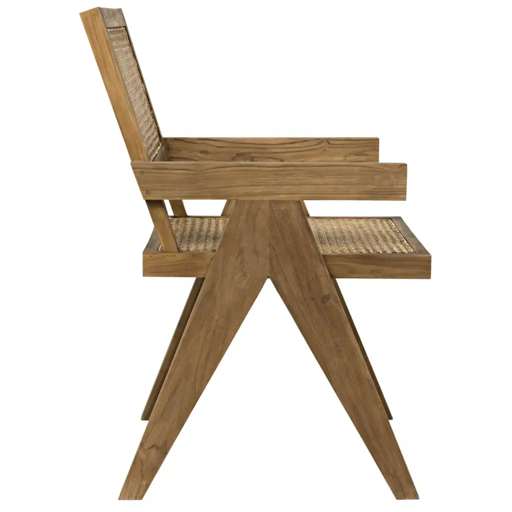 Handcrafted of teak, with tapered legs and natural caning to add interest and comfort to the seat and chair back. A soft neutral finish celebrates the natural grain of the hardwood. Deceptively simple in design, it is the details in this remarkable chair that delight!