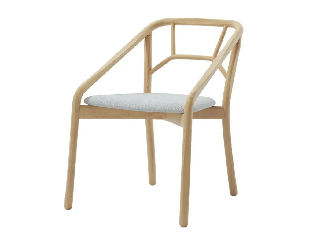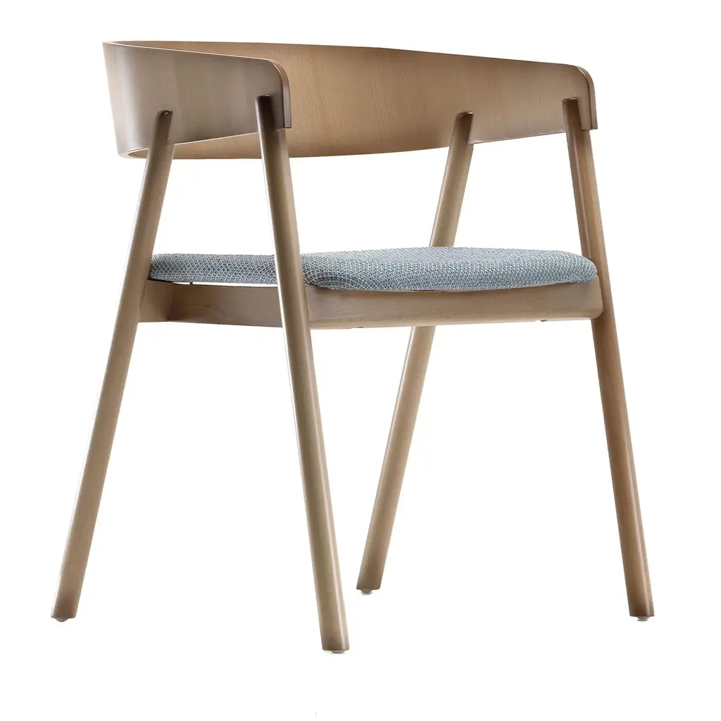 This stunning chair by Emilio Nanni features a clean and simple shape of rustic forms. It reinterprets the archetypical chair in a contemporary key. Handcrafted of bleached wood, it boasts sleek smooth lines that exude a versatile and timeless character. Available in a wide range of colors, it is enriched with a softly upholstered cushion in petrol blue fabric. Please ask the Concierge for available customization options.