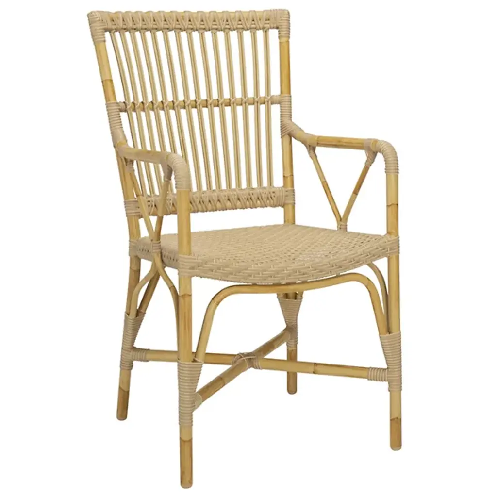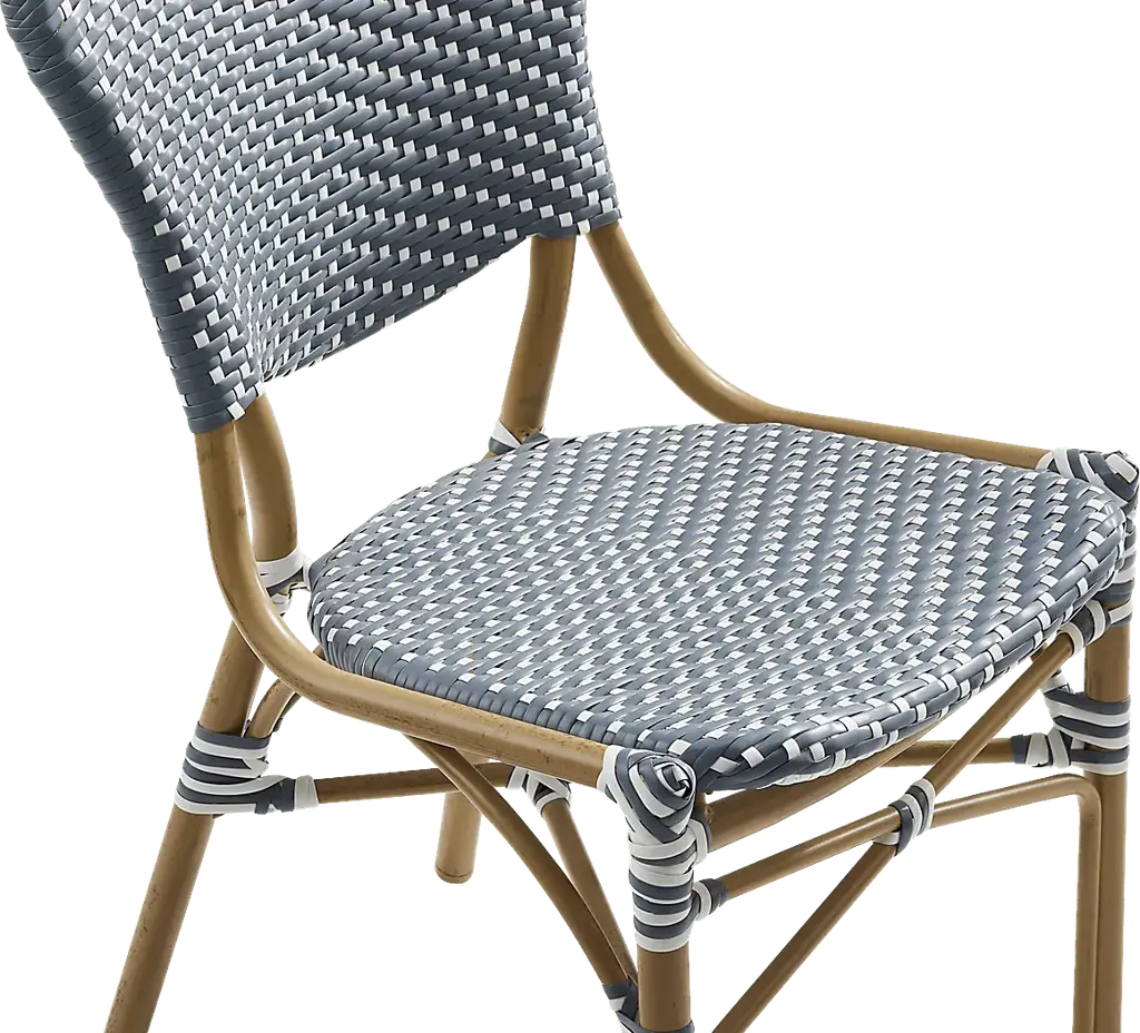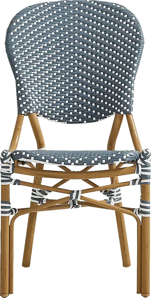 Time in the outdoors adopts a nostalgic tinge with the Juliette II dining collection's familiar forms and delightful coastal details enticing diners to hit the deck and enjoy the fresh air. This side chair in navy blue rattan features a high, rounded back and a frame crafted of rust-resistant aluminum in a natural color with the look of rattan cane.