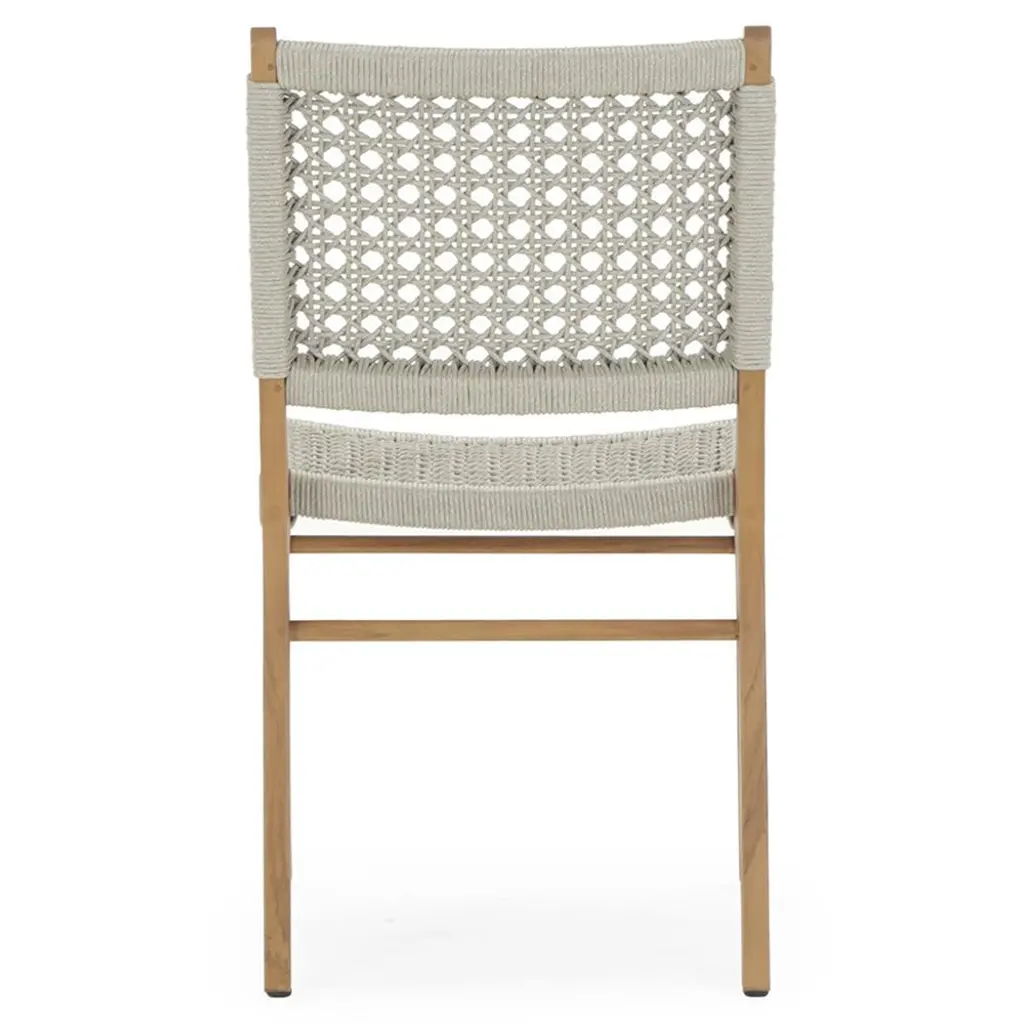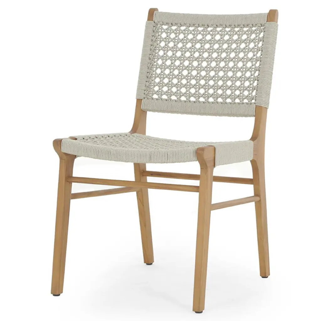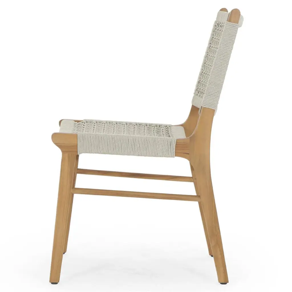 Julius Modern Off White Woven Rope Natural Teak Wood Outdoor Dining Side Chair