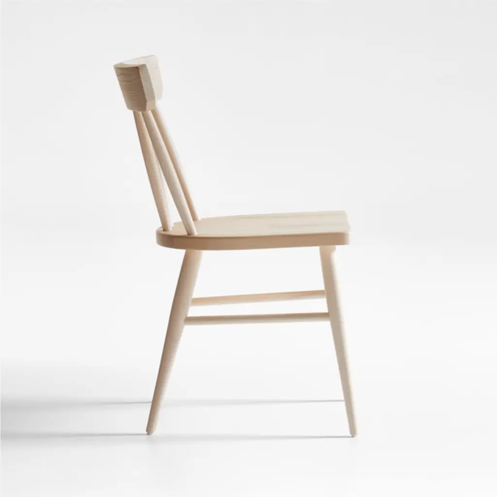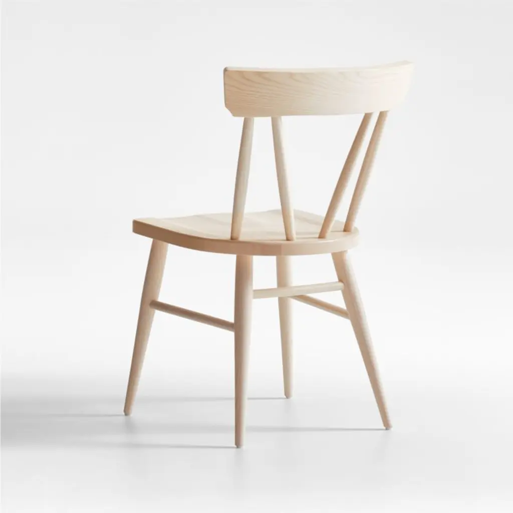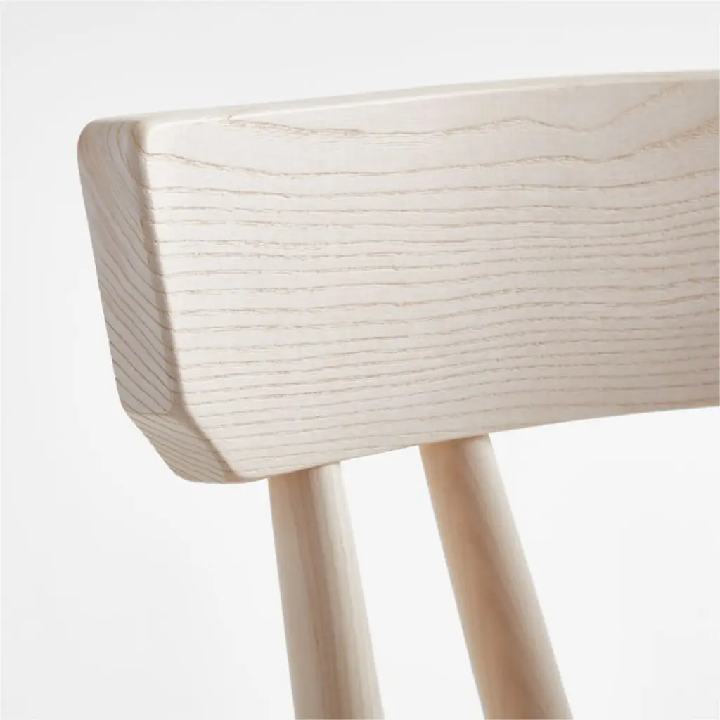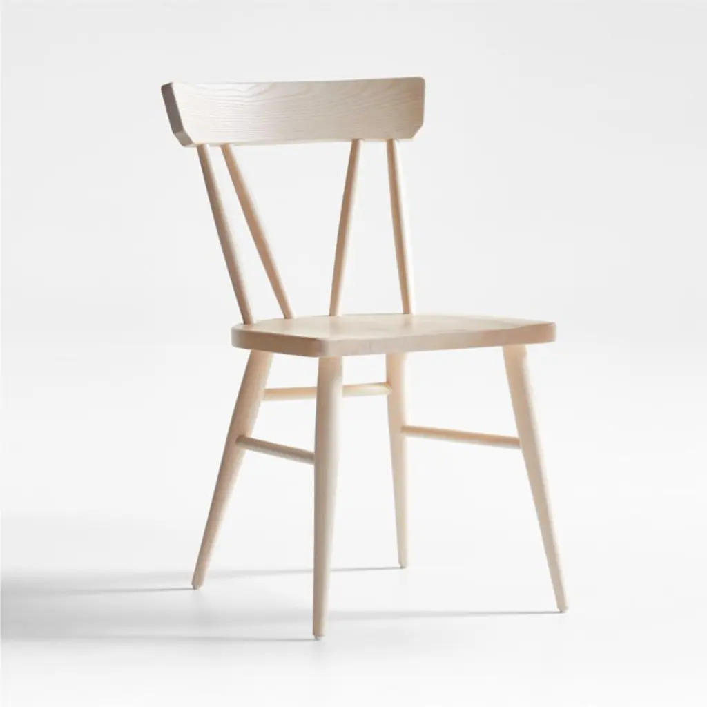 Fewer spindles and a fresh bleached finish update the classic Windsor design with an easy air in our Juni dining chair. Channeling the casual attitude of Scandinavian farmhouse style, the ash wood chair relaxes with softened edges, tapered legs and spindles and a sculpted, linger-worthy seat. A natural choice to pair with any of our dining tables, the Juni dining chair is a Crate & Barrel exclusive.By choosing FSC ®-certified furniture, you are supporting responsible management of the world's forests.