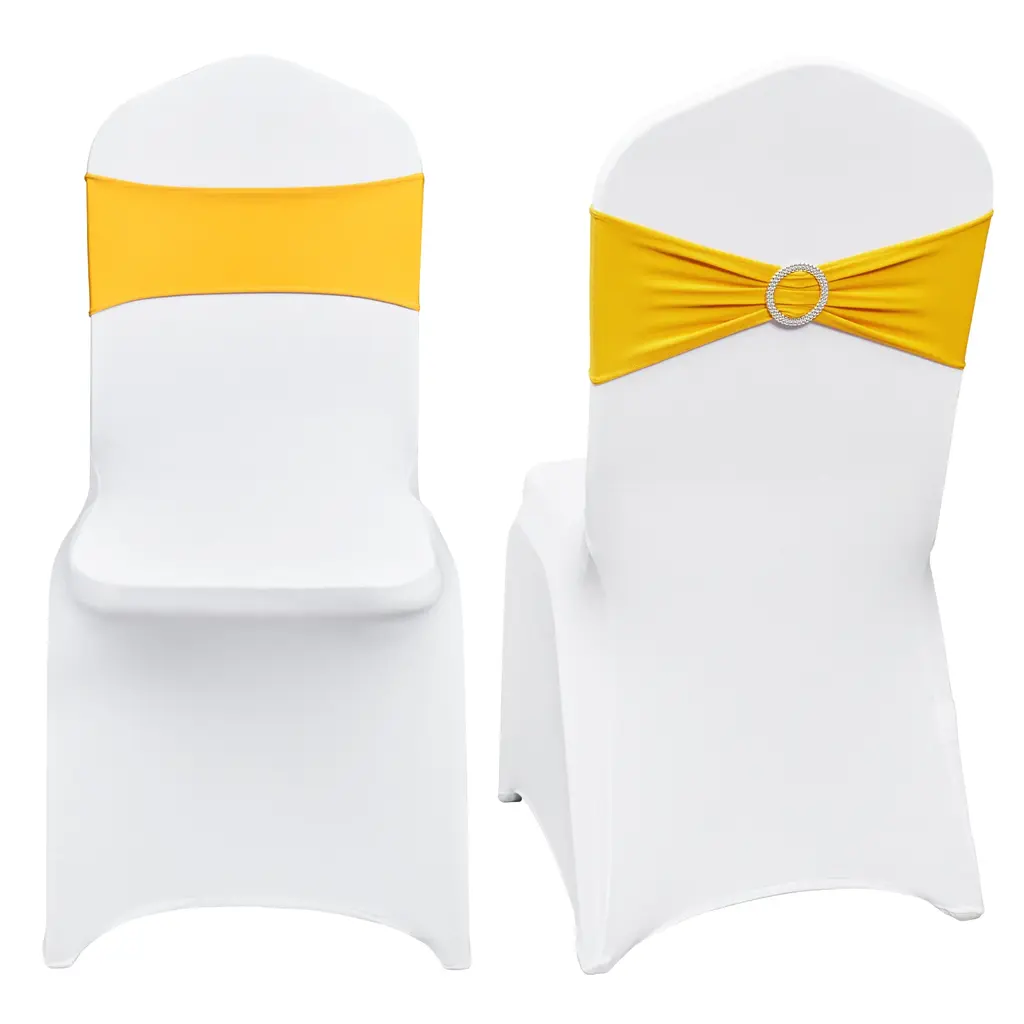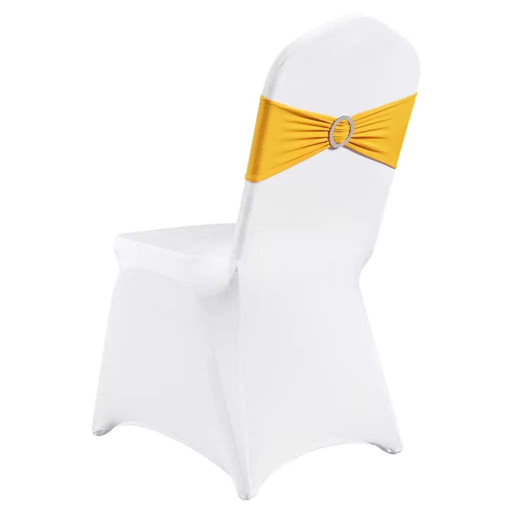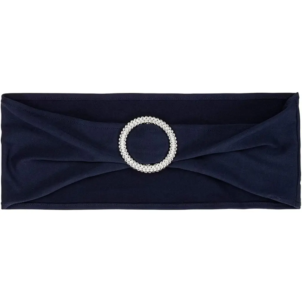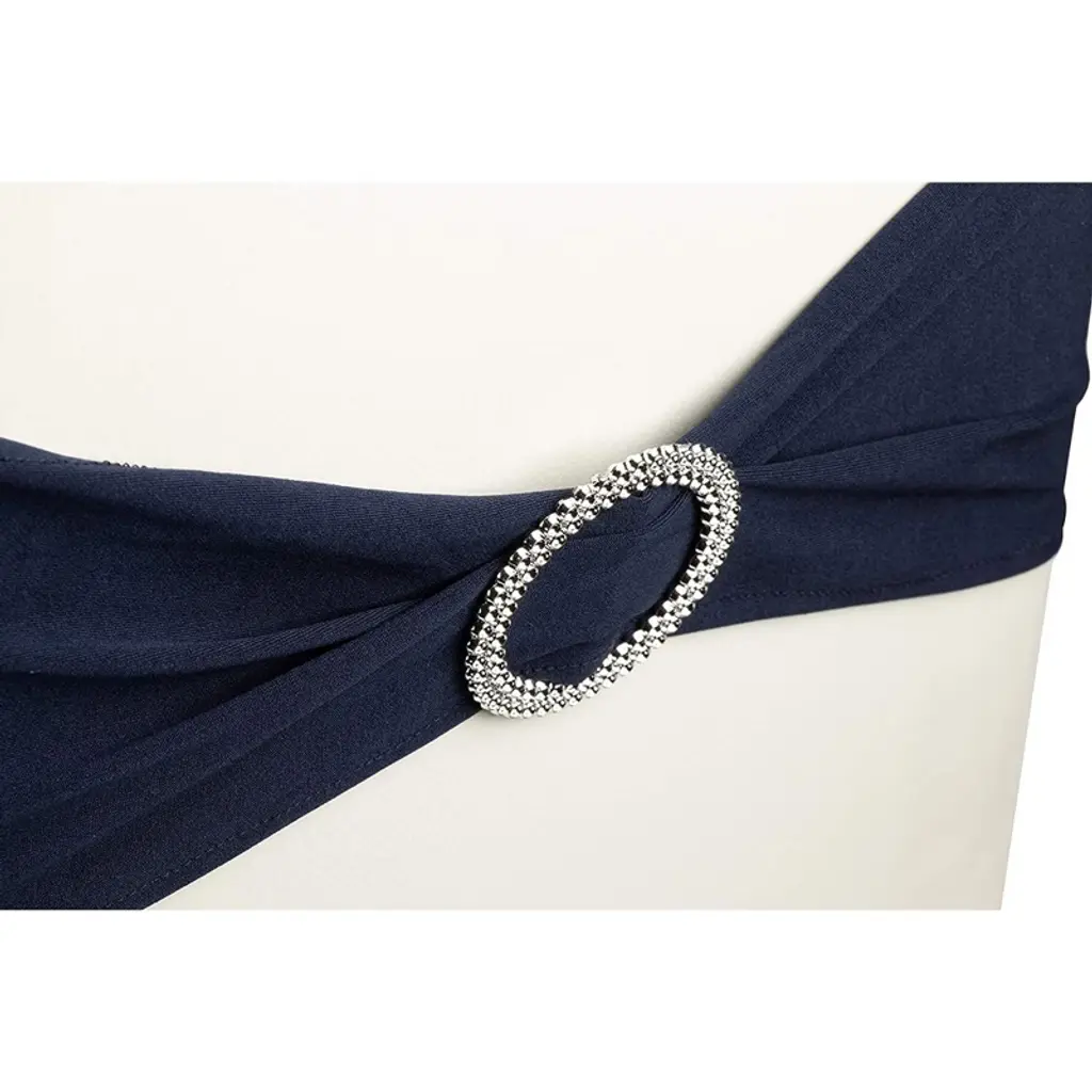 Add Juvale’s set of 50 dark blue dining chair sashes to your party décor for an upcoming wedding, bachelorette party, baby shower, or kids' birthday party. The decorative rhinestone plastic buckle will instantly elevate your party venue. Use the chair sashes for banquet chairs or folding chairs. The stretchable polyester is designed to fit chairs with 13.5- to 16.5-inch chair backs.