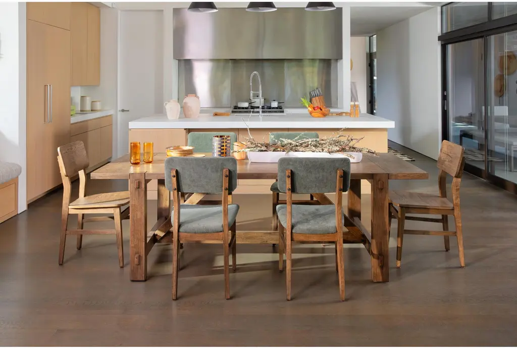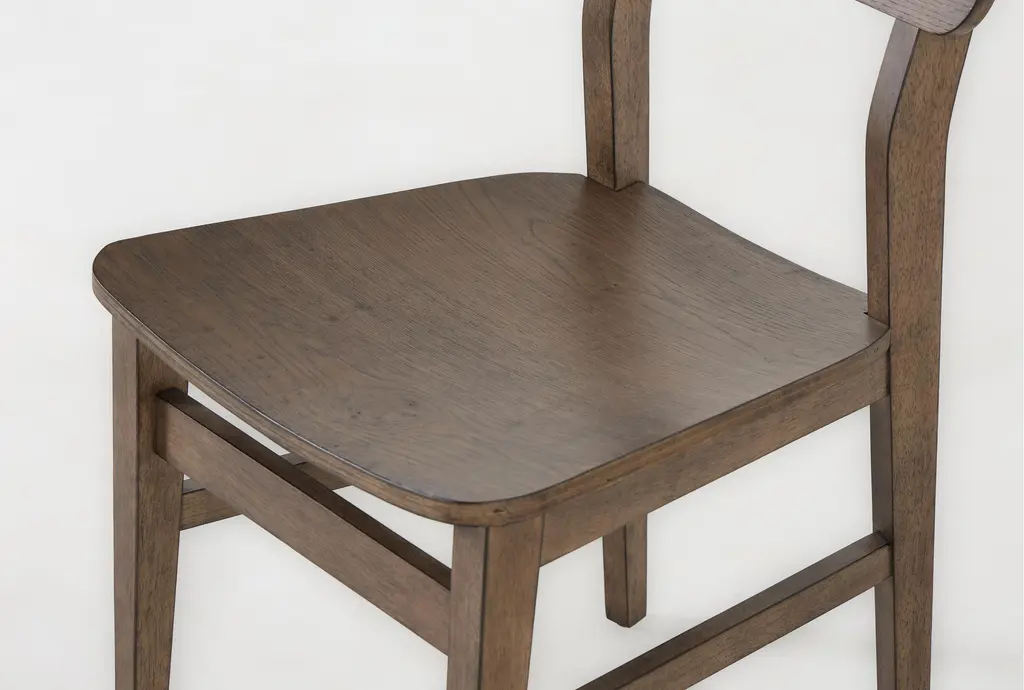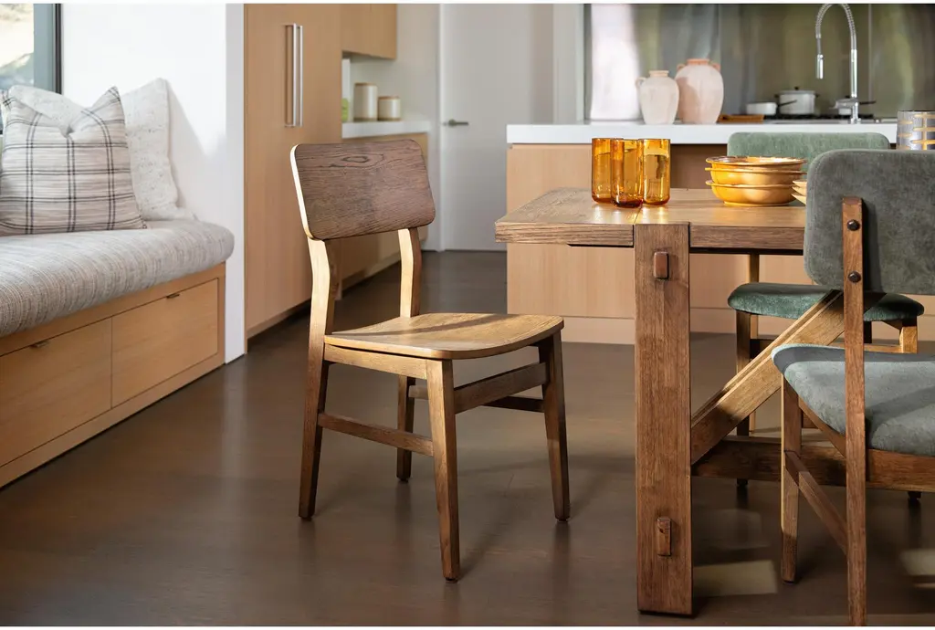 Designed and developed by Living Spaces to evoke a sense of craft and history, our Kai dining chair brings a handmade American-inspired aesthetic to your space. In addition to solid hardwood, this piece features knotty oak veneer with imperfections and characteristics that show the wood's natural beauty and wear for an authentic rustic look. Simple yet thoughtful, the design is made to intentionally reveal its construction.