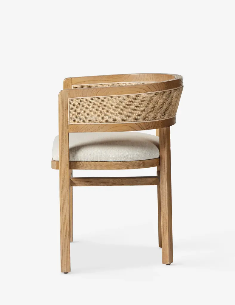 With its barrel back and cane paneling, the Kairi dining chair styles with timeless elegance. A light finish showcases the wood grain, adding to the natural texture mix. This cushioned dining seat is set for comfort, whether in a formal setting or elevating your everyday table.