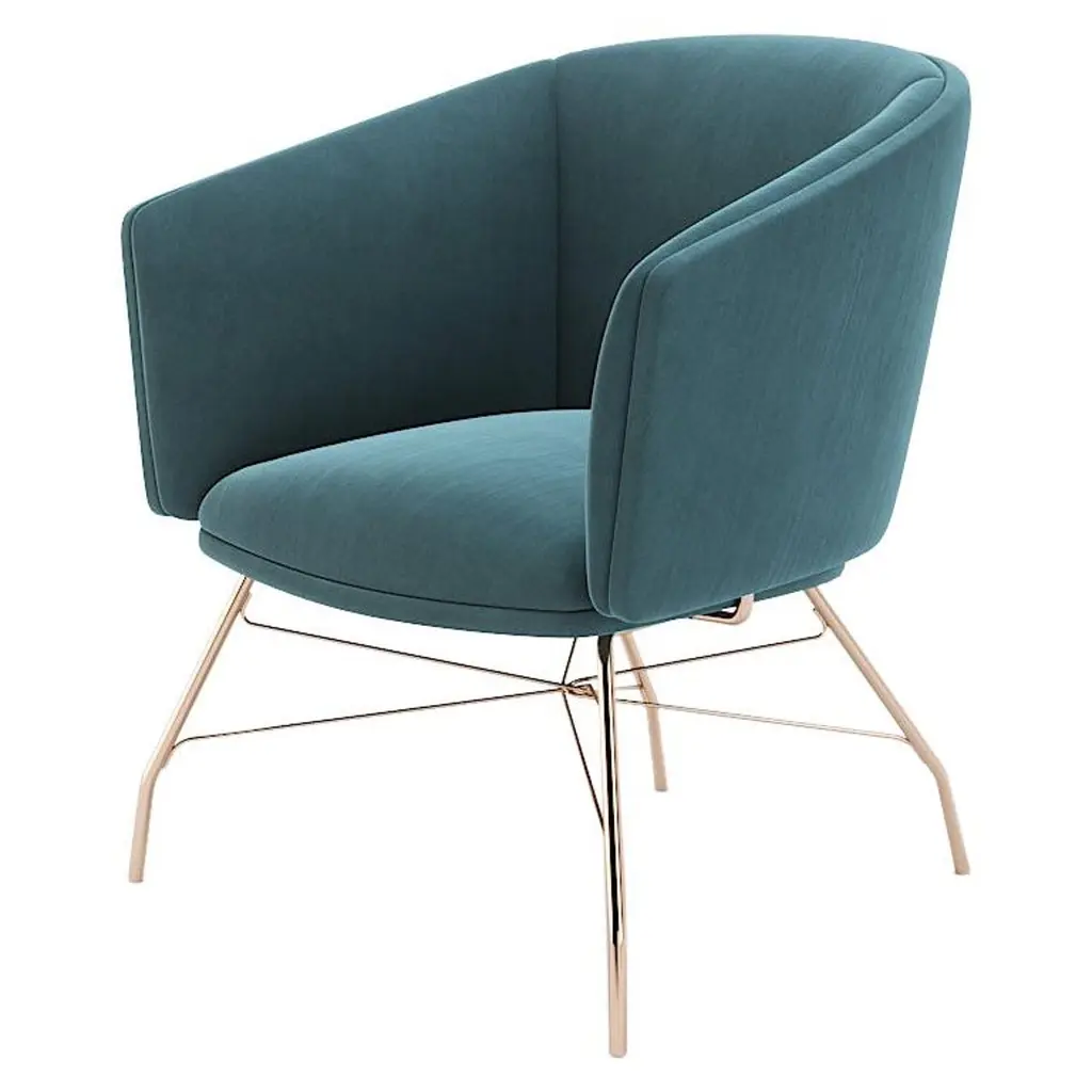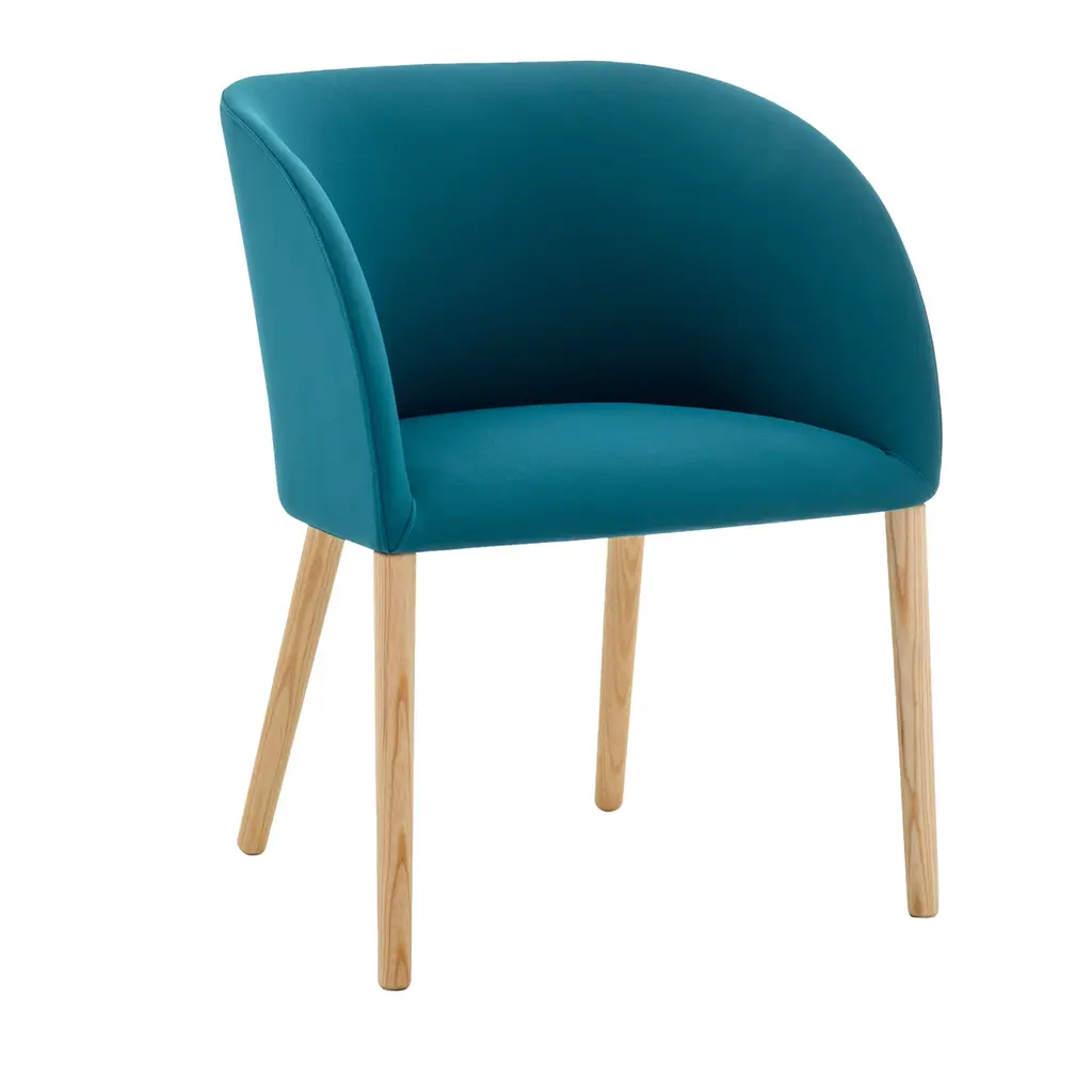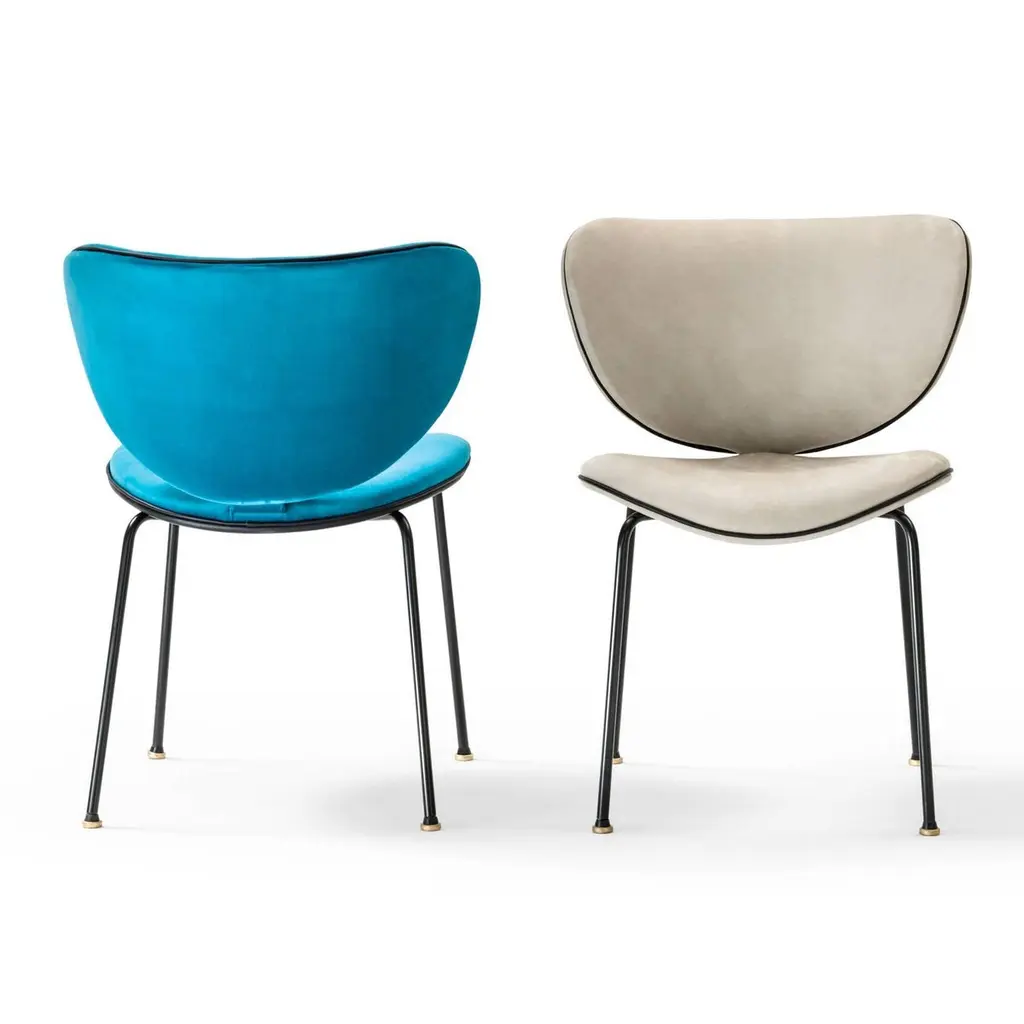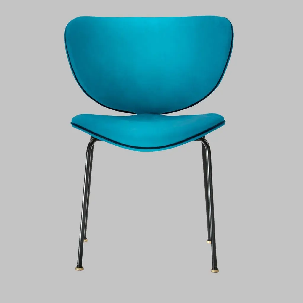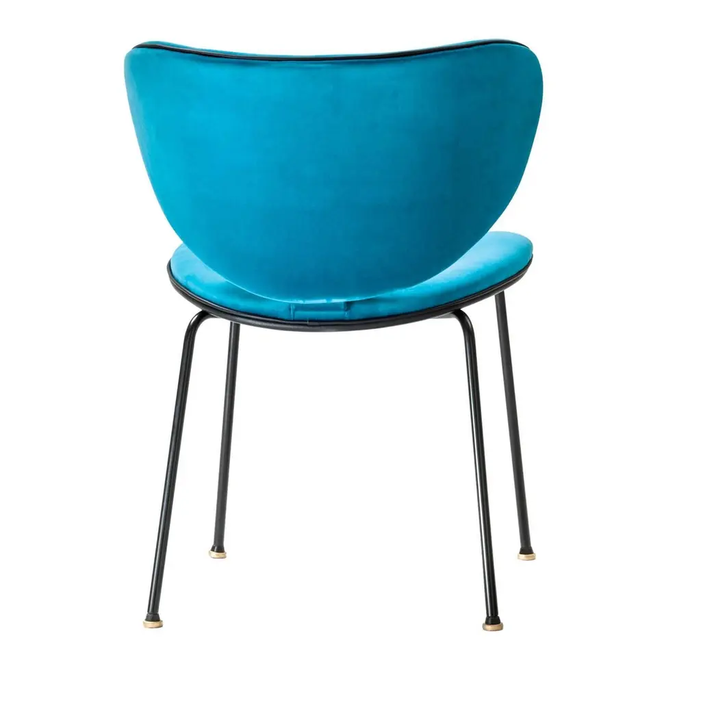 Part of a new collection presented at Milan Design Week 2018, this chair features a contemporary look and sleek design that will complement any decor. It is constructed with a black-finished metal frame which supports a comfortable seat and curved backrest made of beech wood with high-resilience expanded polyurethane padding. The cerulean color of the fabric upholstery and the gold-finished ferules add an elegant touch to this chair that is guaranteed to be the highlight of any dining set.