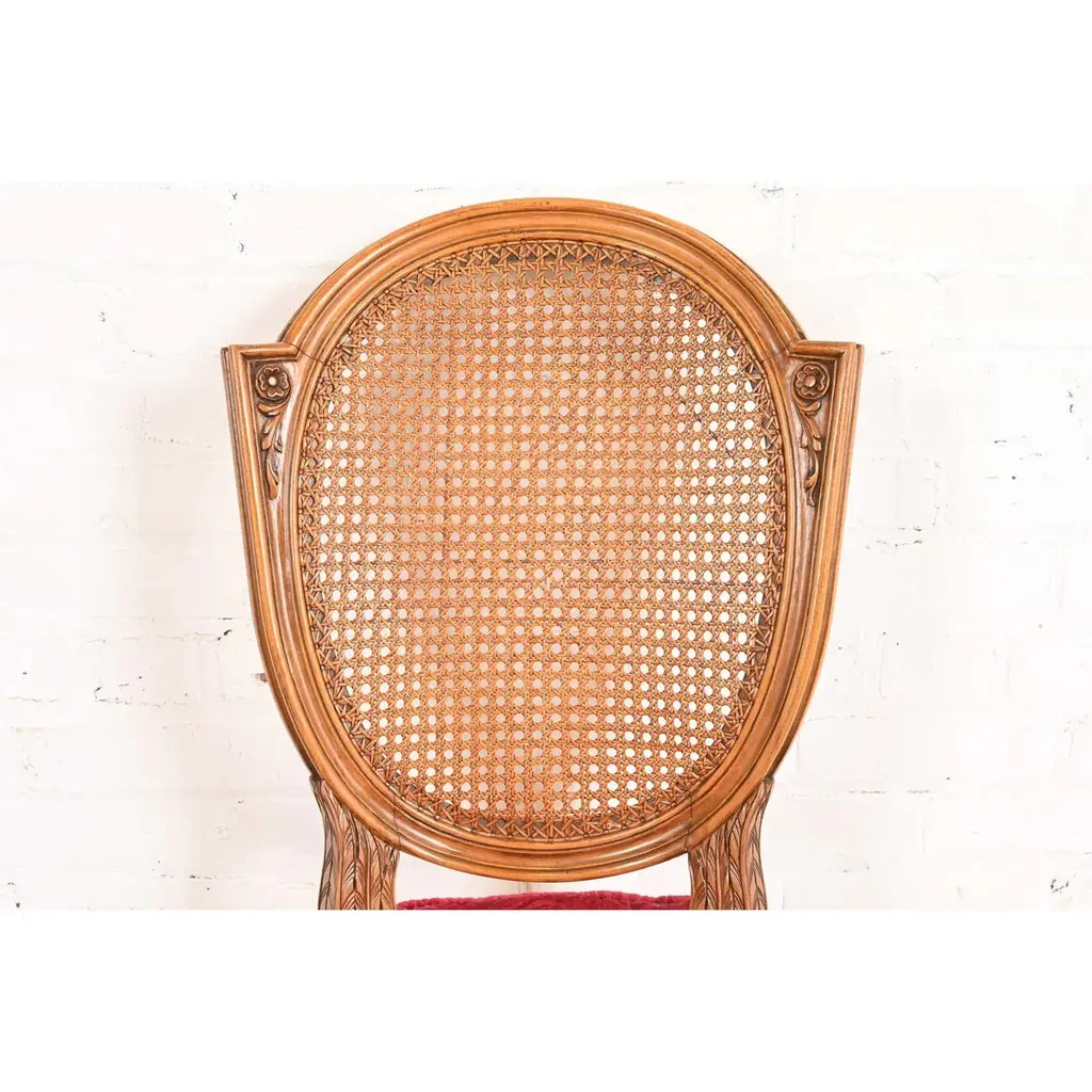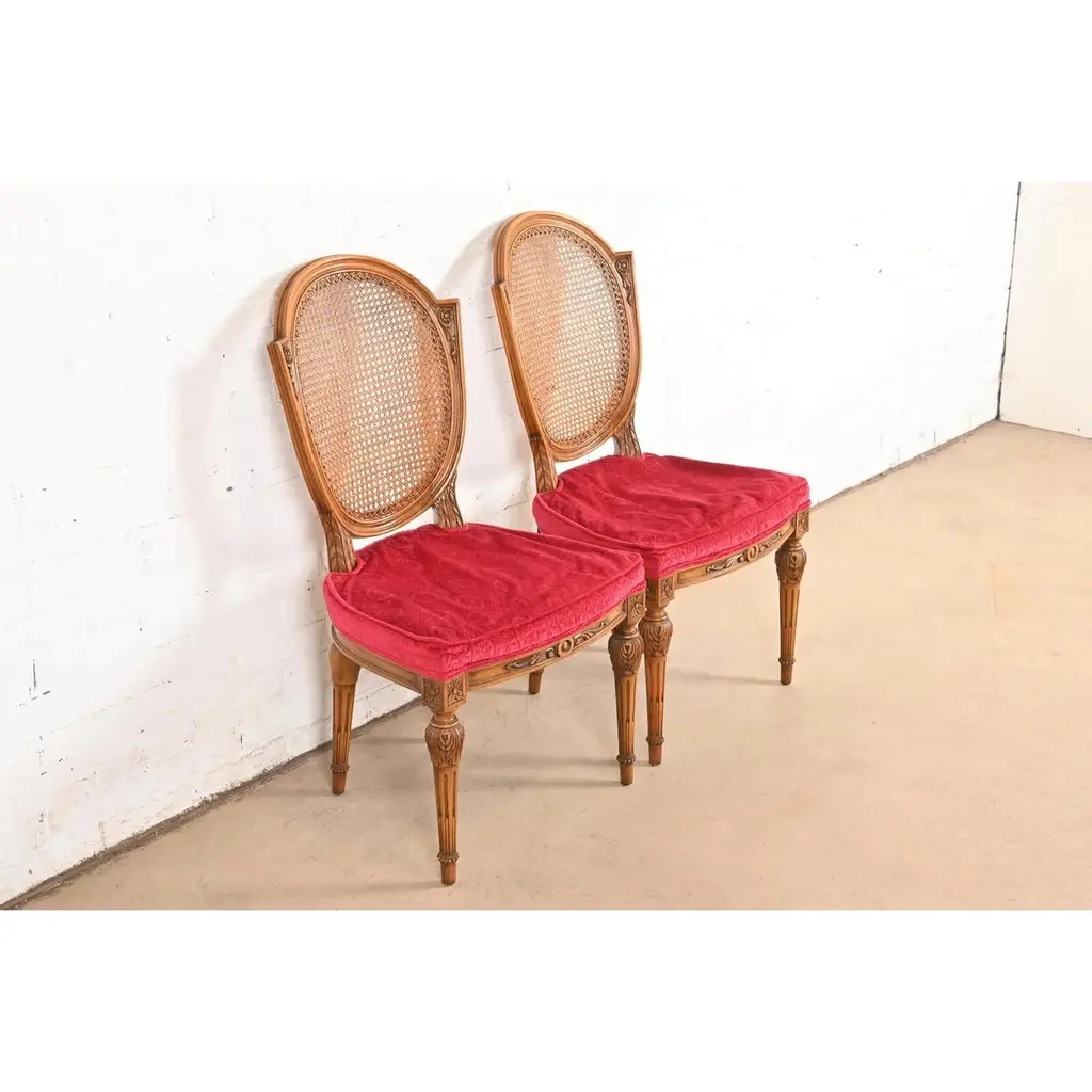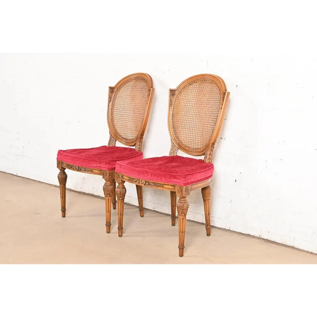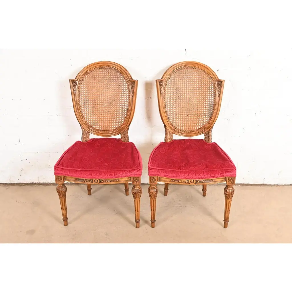 Karges French Regency Louis Xvi Carved Walnut Cane Back Dining Chairs, Pair