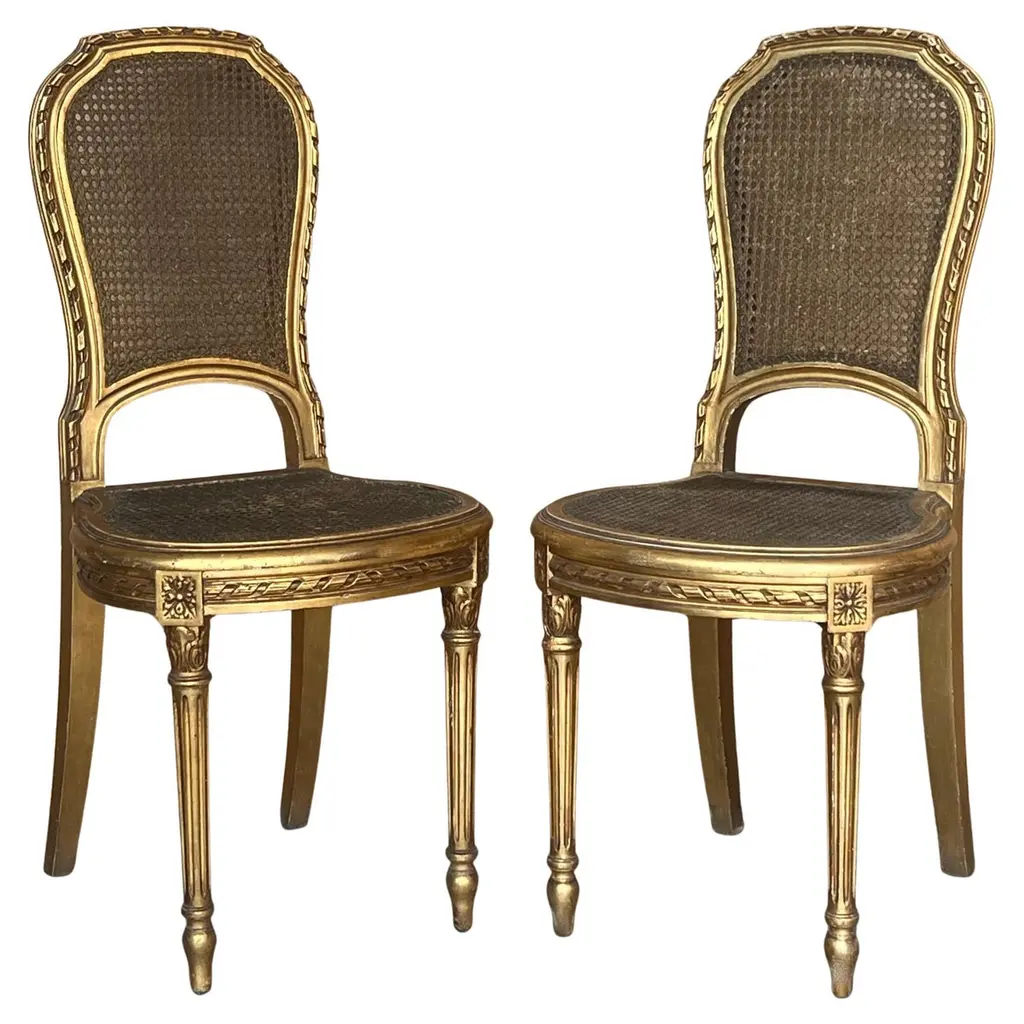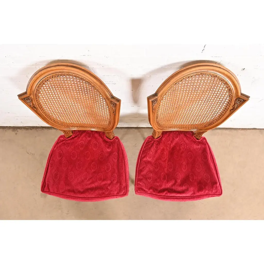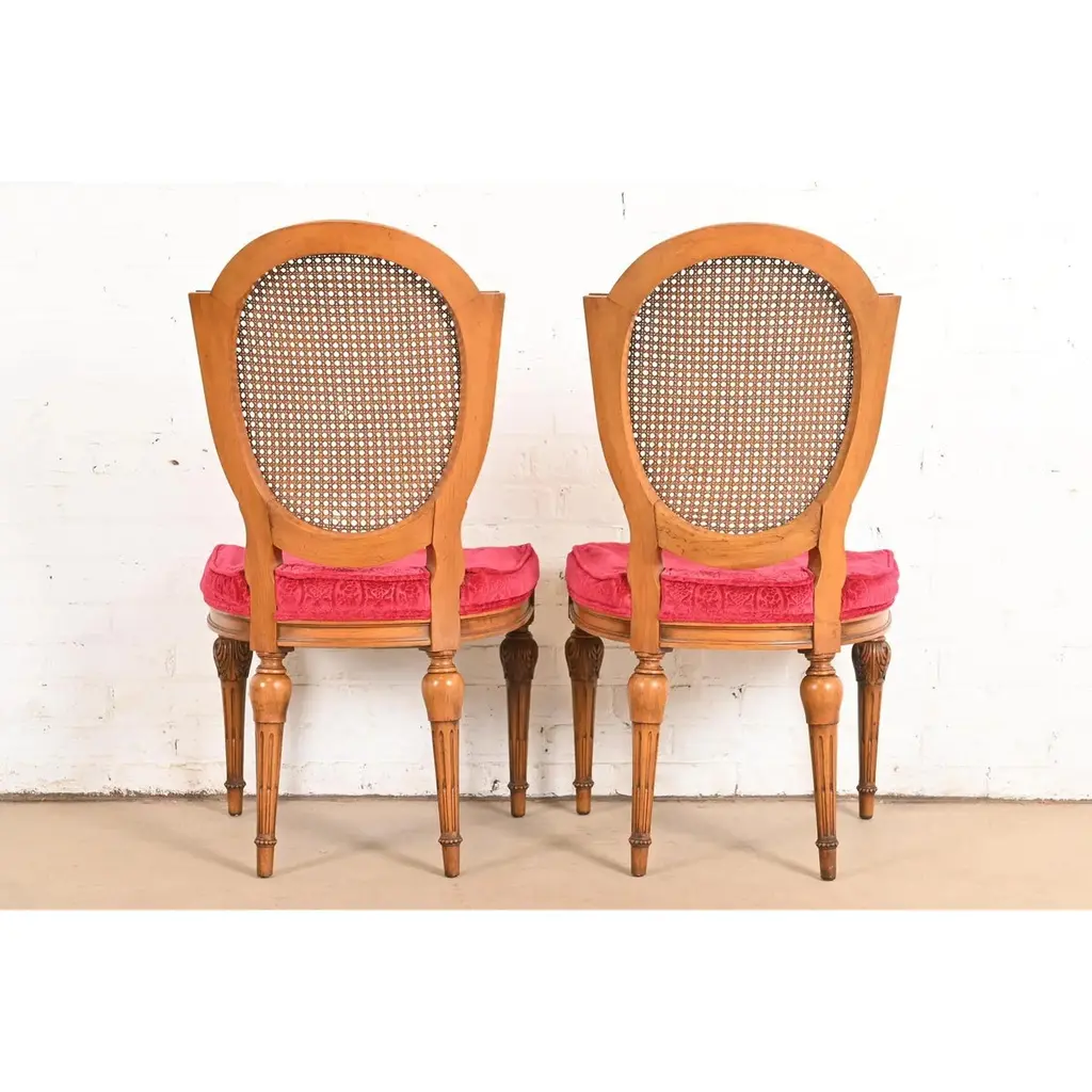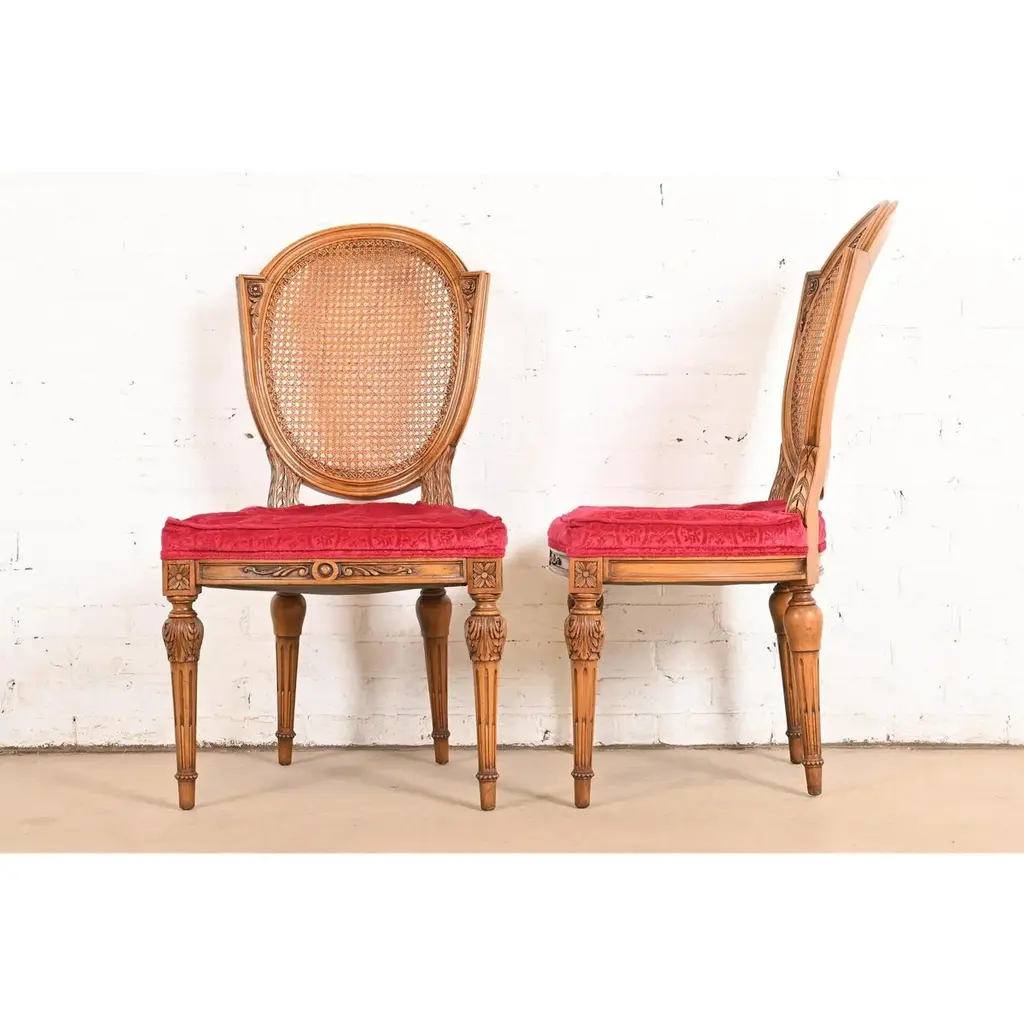 Karges French Regency Louis Xvi Carved Walnut Cane Back Dining Chairs, Pair