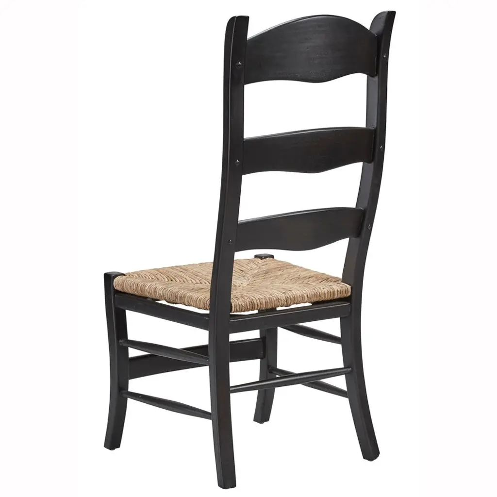 Karina Updated Traditional Black Wood Woven Rush Ladder Back Side Chair