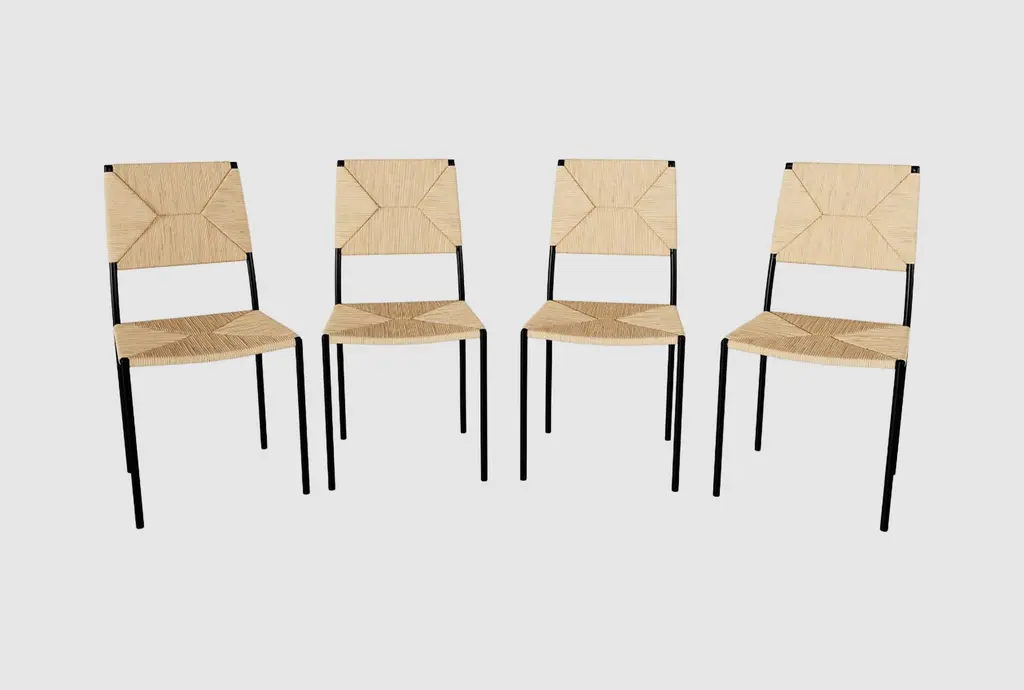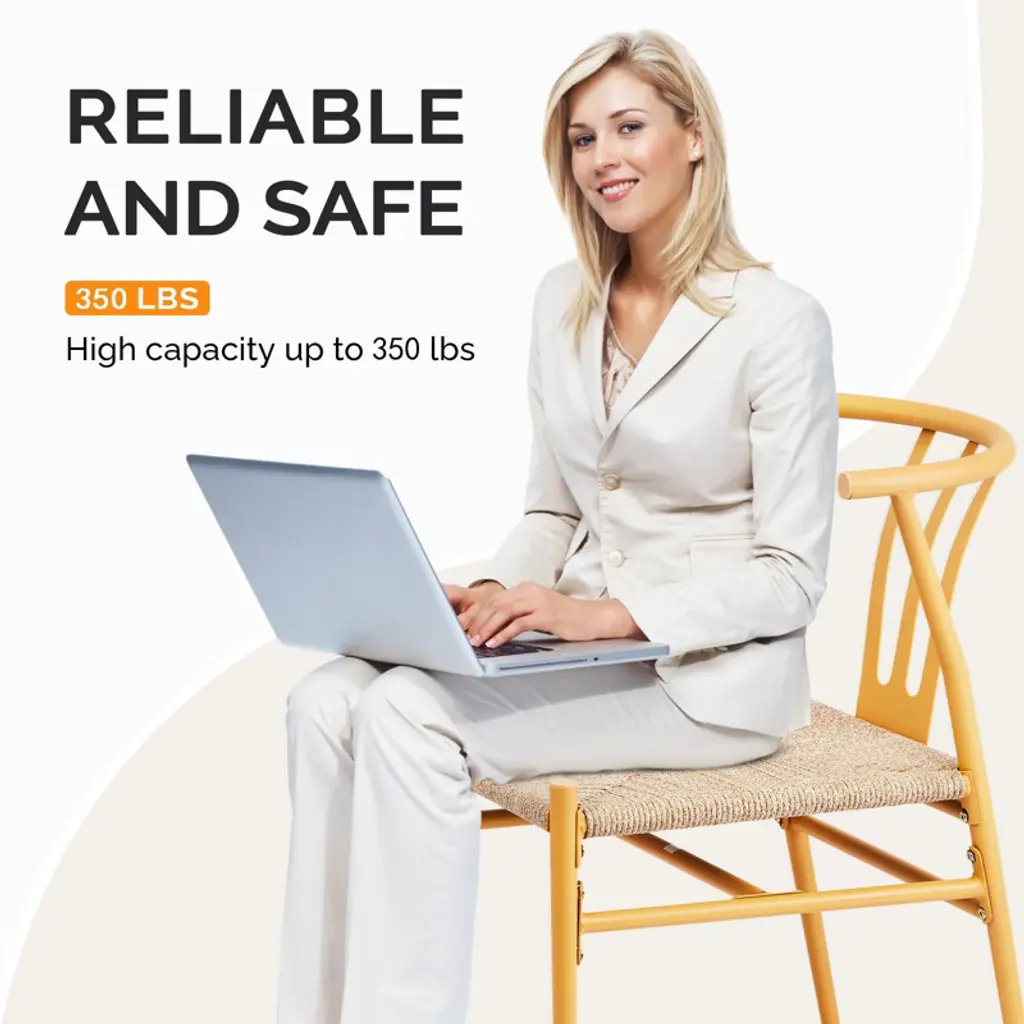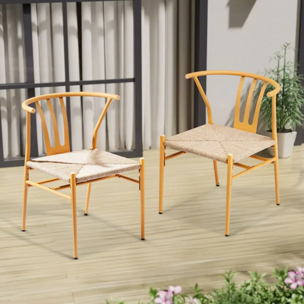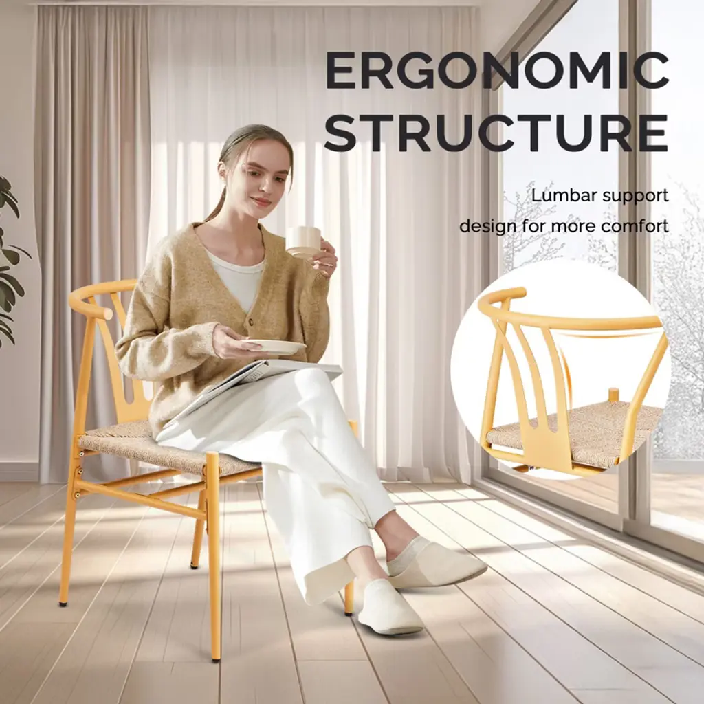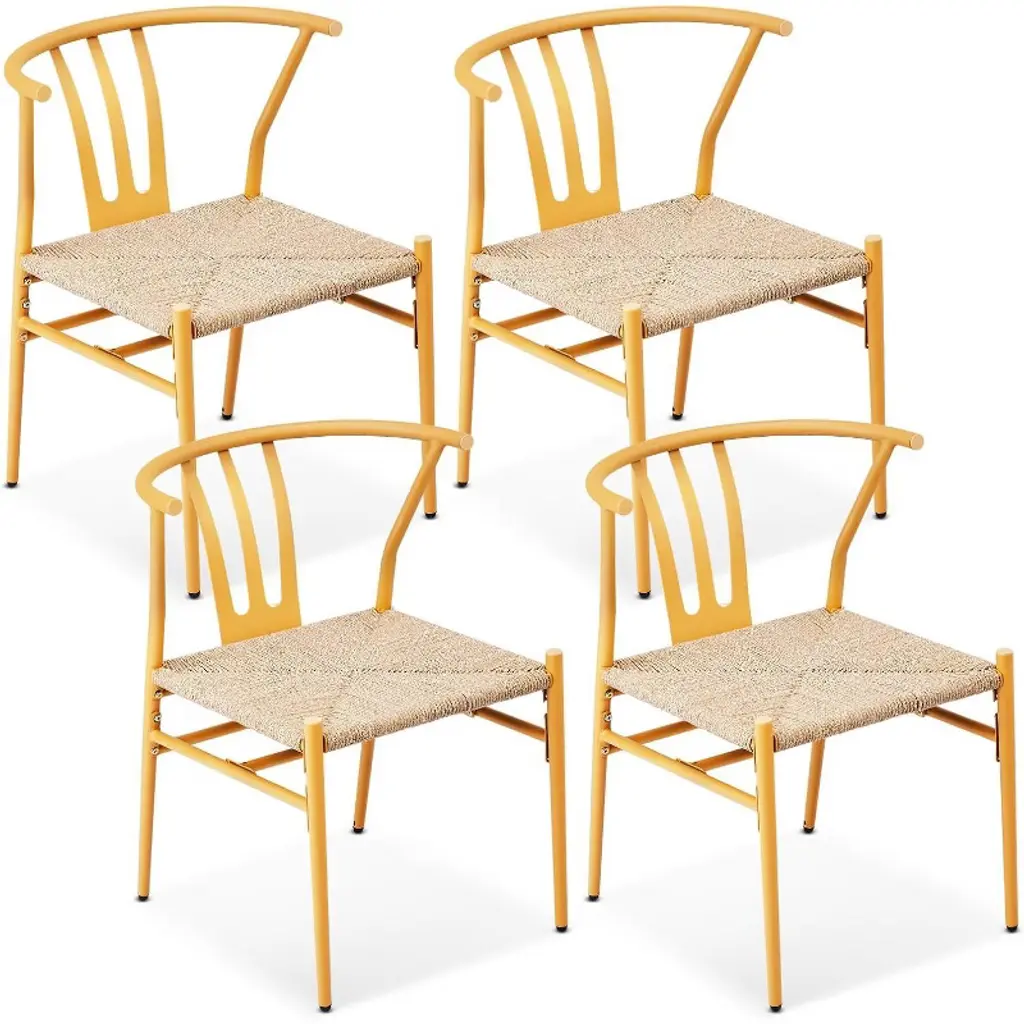 Karl Home | Yellow Metal-framed Weave Dining Chair (4-pack)