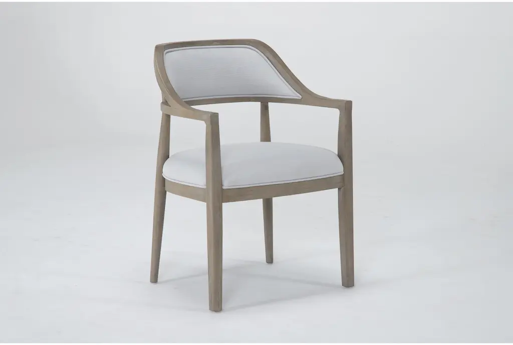 Kasey Grey Wood Upholstered Arm Dining Chair With Back