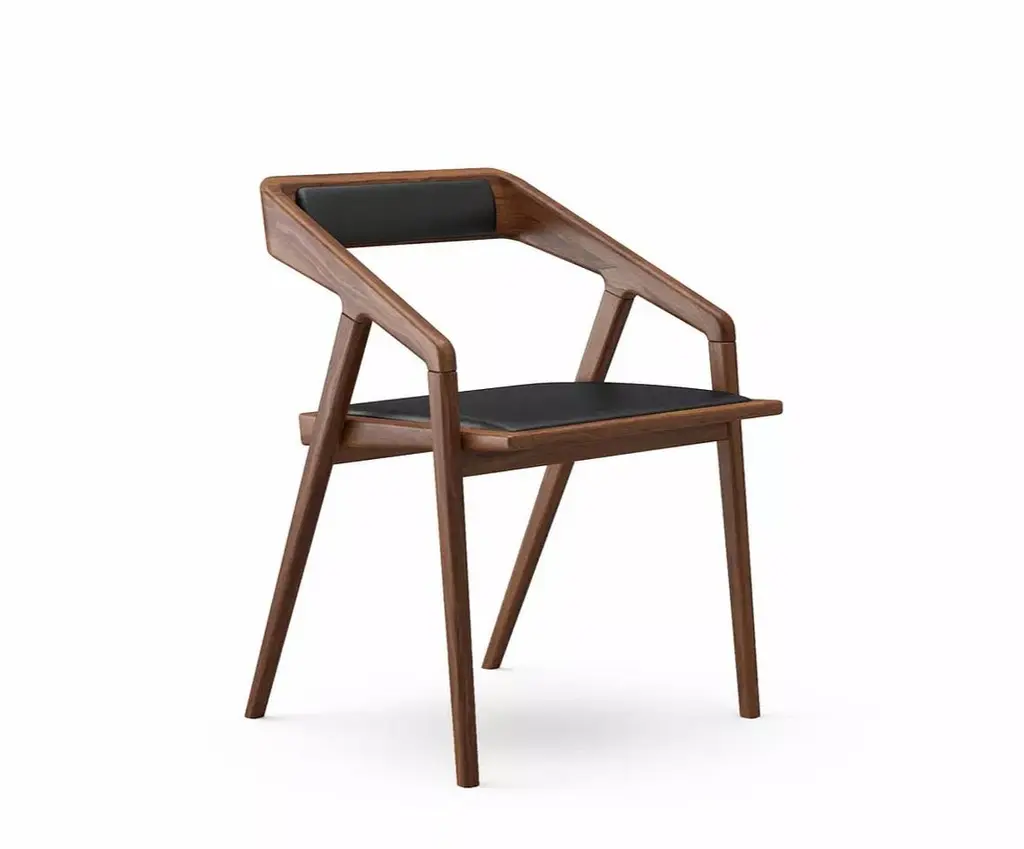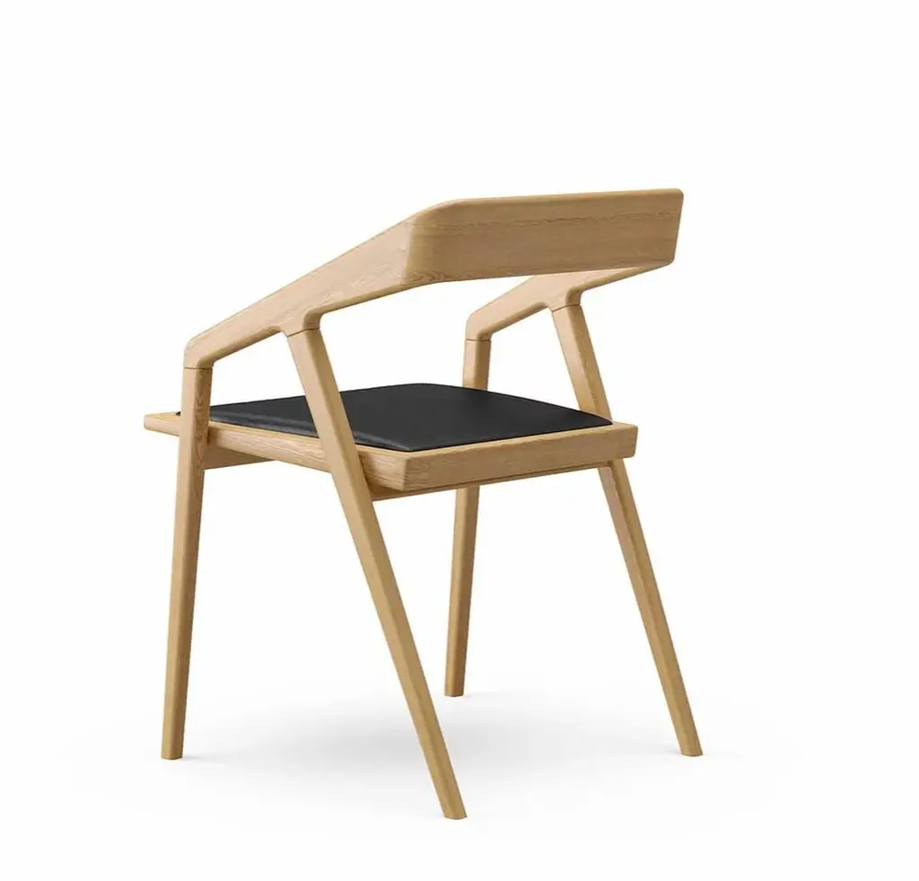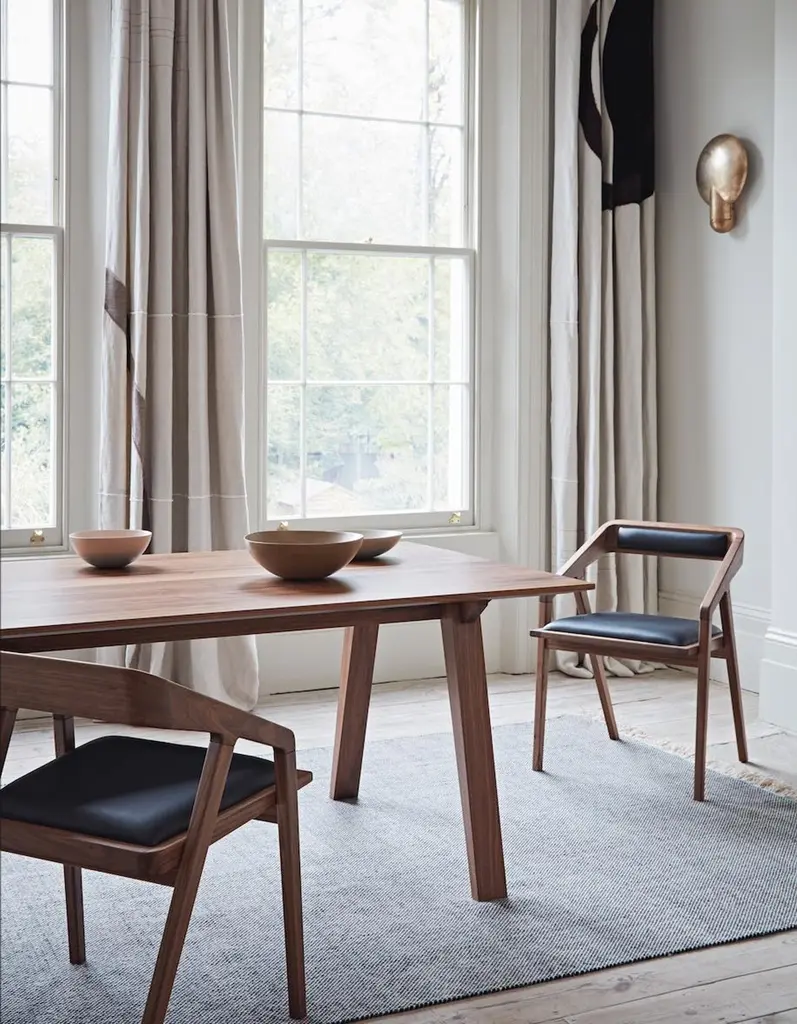 Katakana dining chair by Dare Studio, 2009Dimensions: H 75.6 x D 56.4 x W 57 cmMaterials: European white oak, black leatherAlso available in American black walnut, Wax oiled finish. All pieces are available in different fabrics and leathers.Dare Studio is a British design company producing award winning furniture for luxury residential interiors and high specification contract environments. Established by Sean Dare in 2009, Dare Studio champions the skills of the finest craftsmen and sets a benchmark for the very best in contemporary design and manufacture. Working with globally respected designers sharing a holistic understanding of the manufacturing process, Dare strives to create pieces which are timeless, future classics.
