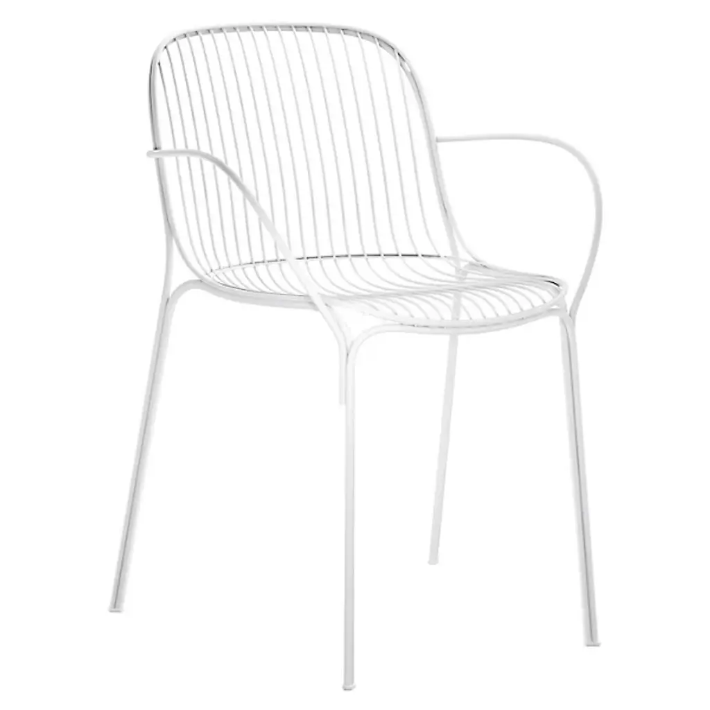 A sleek and soft-looking seat for indoor or outdoor dining areas. The defining design detail of the Kate Chair, Set of 2 by Fermob is its curved steel shell backrest, which encircles a sitter and features numerous irregular perforations that give the chair an almost shimmering effect. The rest of the chair is also made of steel, including a steel sheet seat and tubular steel frame. All the available powder coat finishes make this piece suitable for outdoor use. Designed by Patrick Jouin.