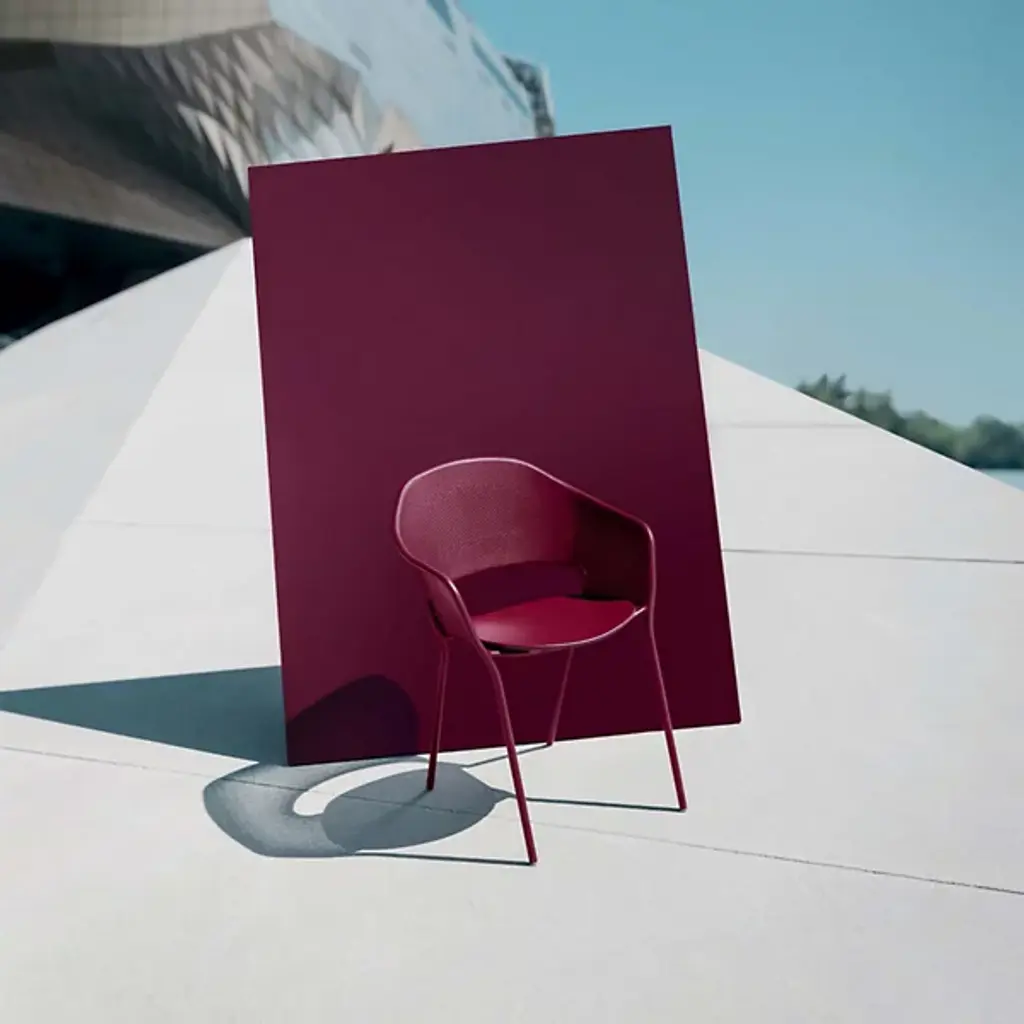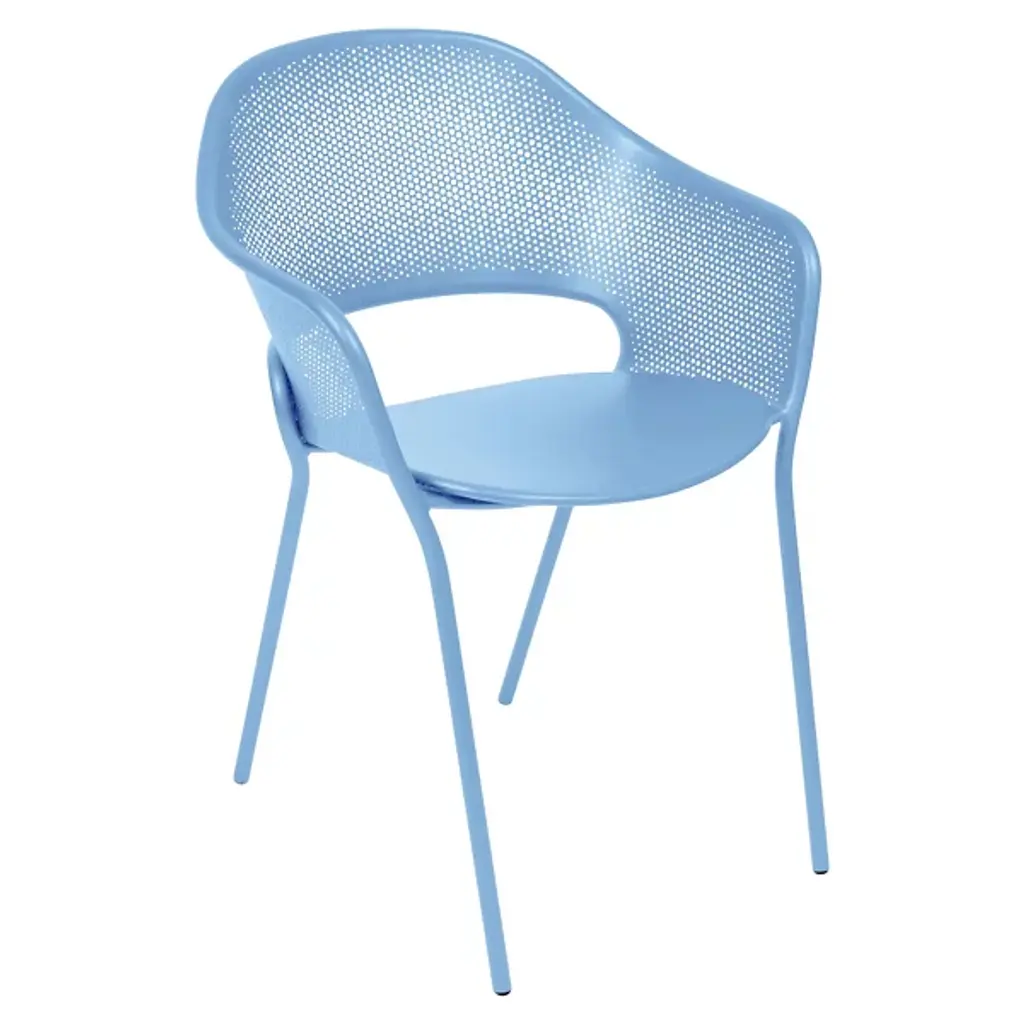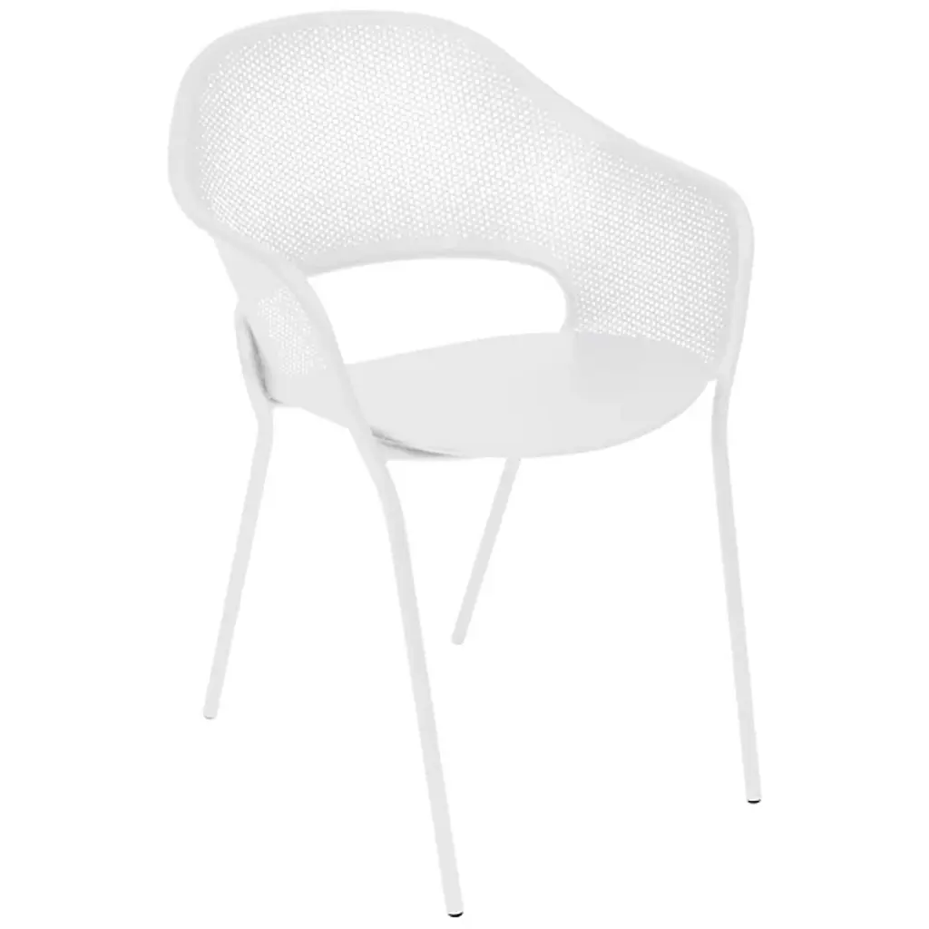 A sleek and soft-looking seat for indoor or outdoor dining areas. The defining design detail of the Kate Chair, Set of 2 by Fermob is its curved steel shell backrest, which encircles a sitter and features numerous irregular perforations that give the chair an almost shimmering effect. The rest of the chair is also made of steel, including a steel sheet seat and tubular steel frame. All the available powder coat finishes make this piece suitable for outdoor use. Designed by Patrick Jouin.