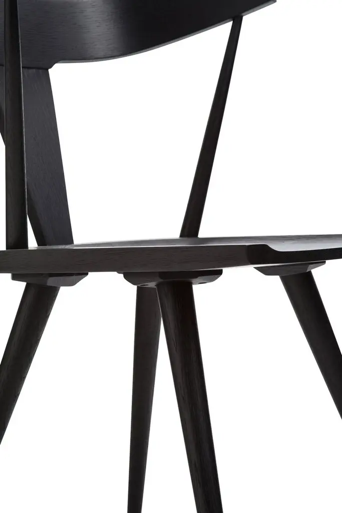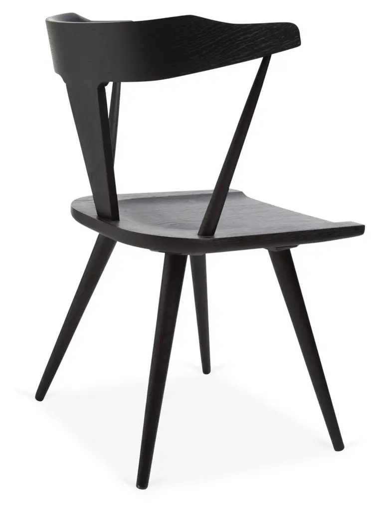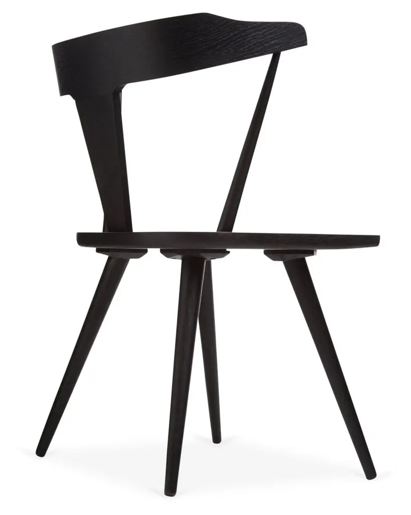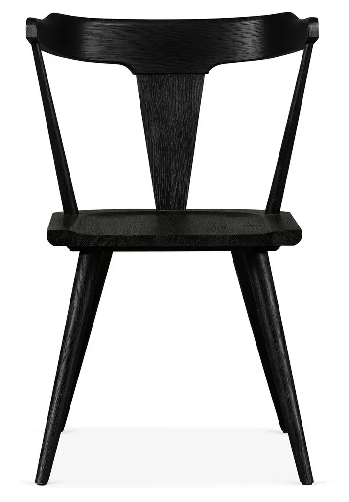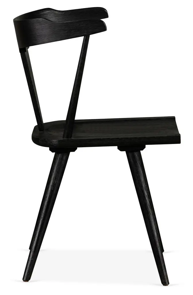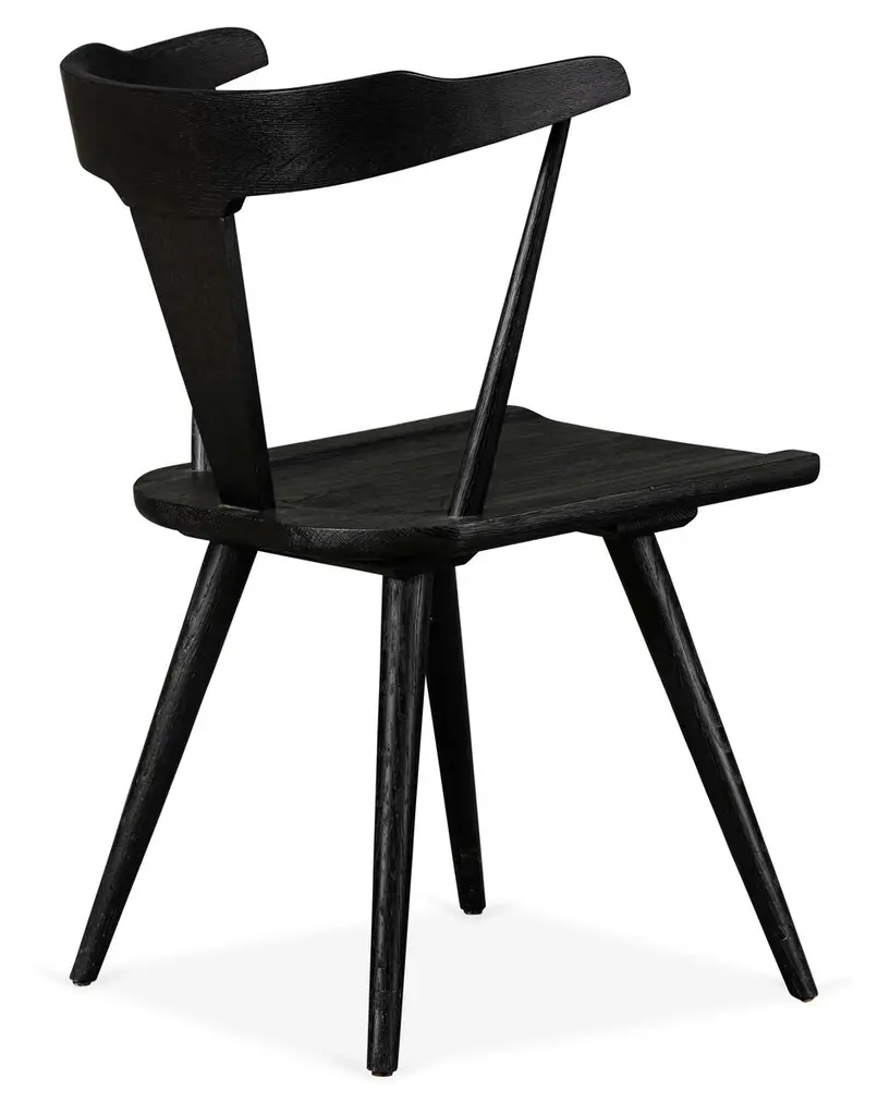 Beautifully crafted of oak, this chair makes a chic statement with its curved, midcentury-inspired silhouette, splayed legs, and black finish.