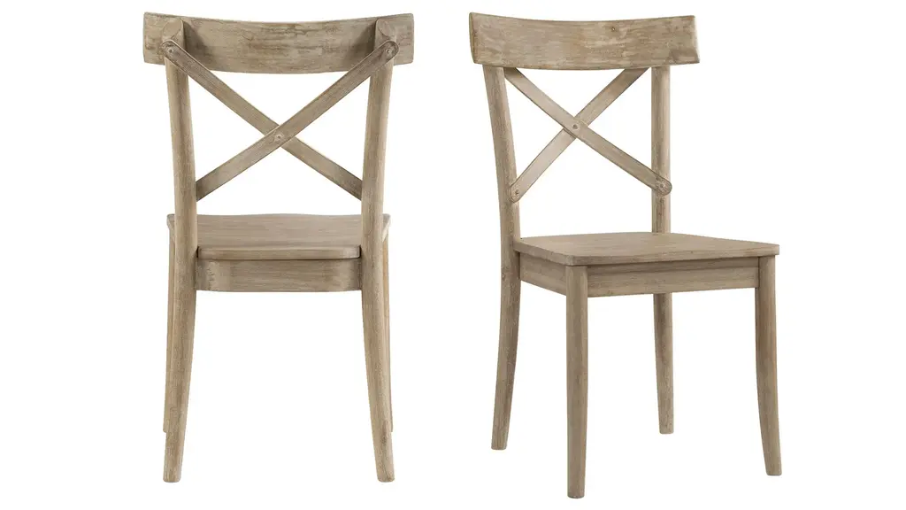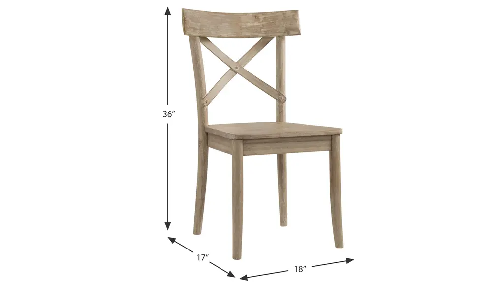 The Keaton Side Chair Set of 2 will pair perfectly with your Keaton dining tables! This set includes two, x-back chairs that add a little extra flair to this set. The chairs feature a rustic design in a natural, beach finish.