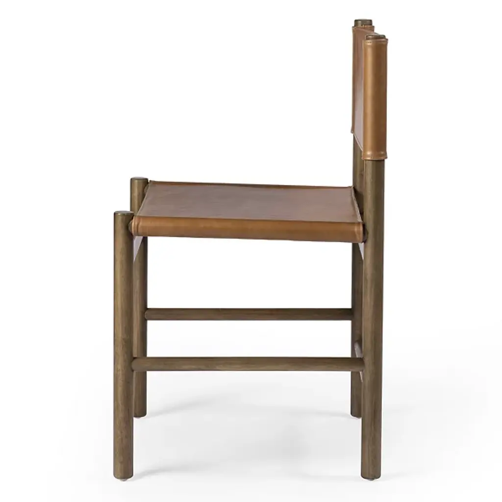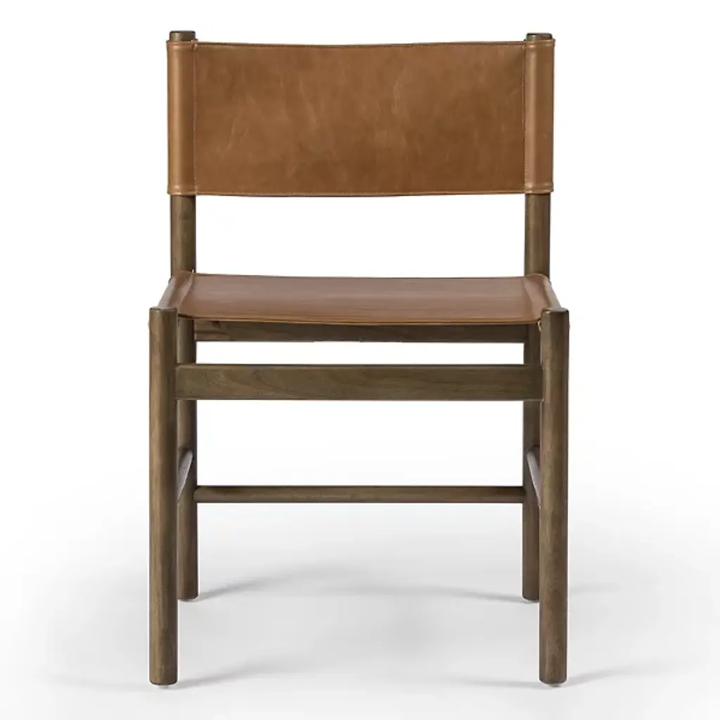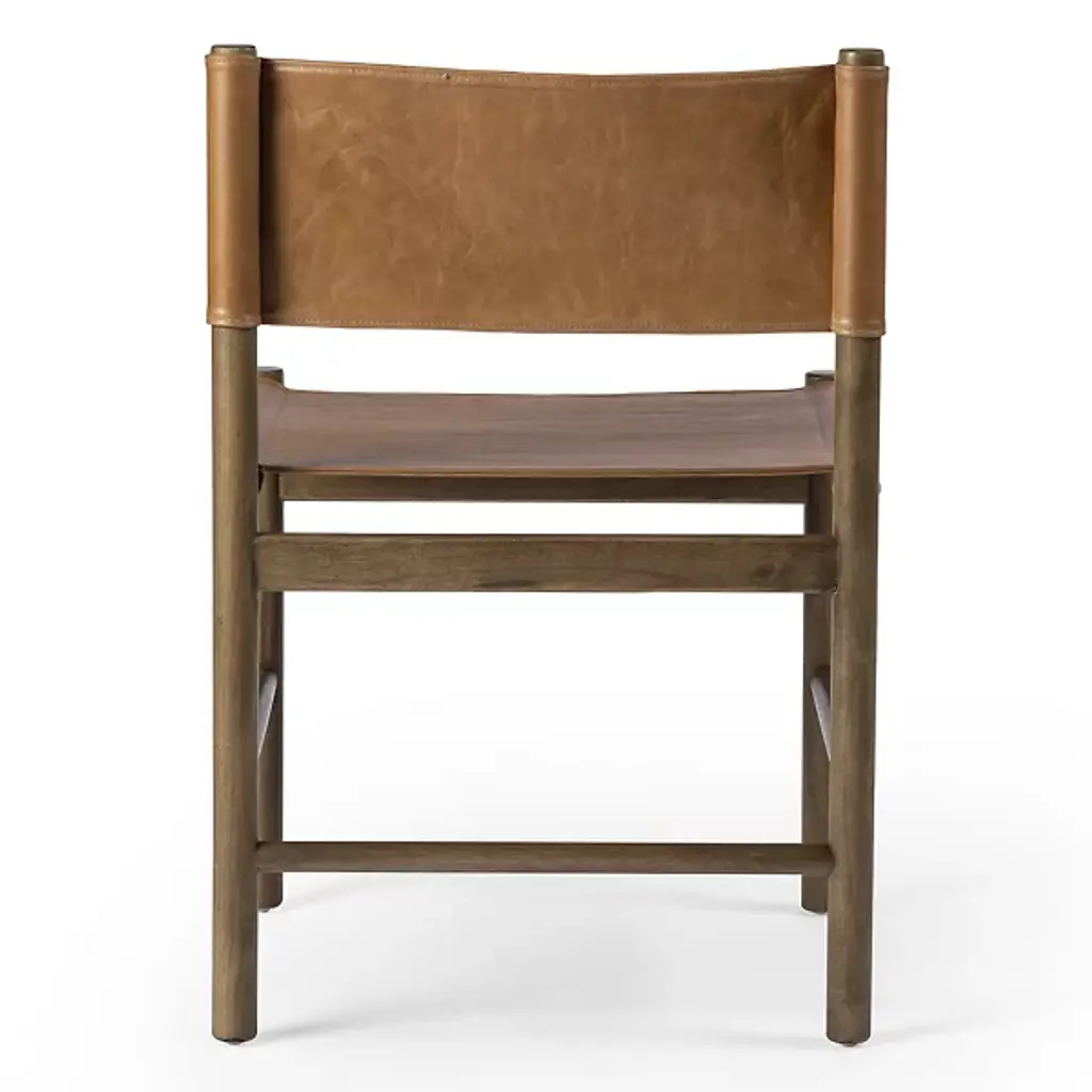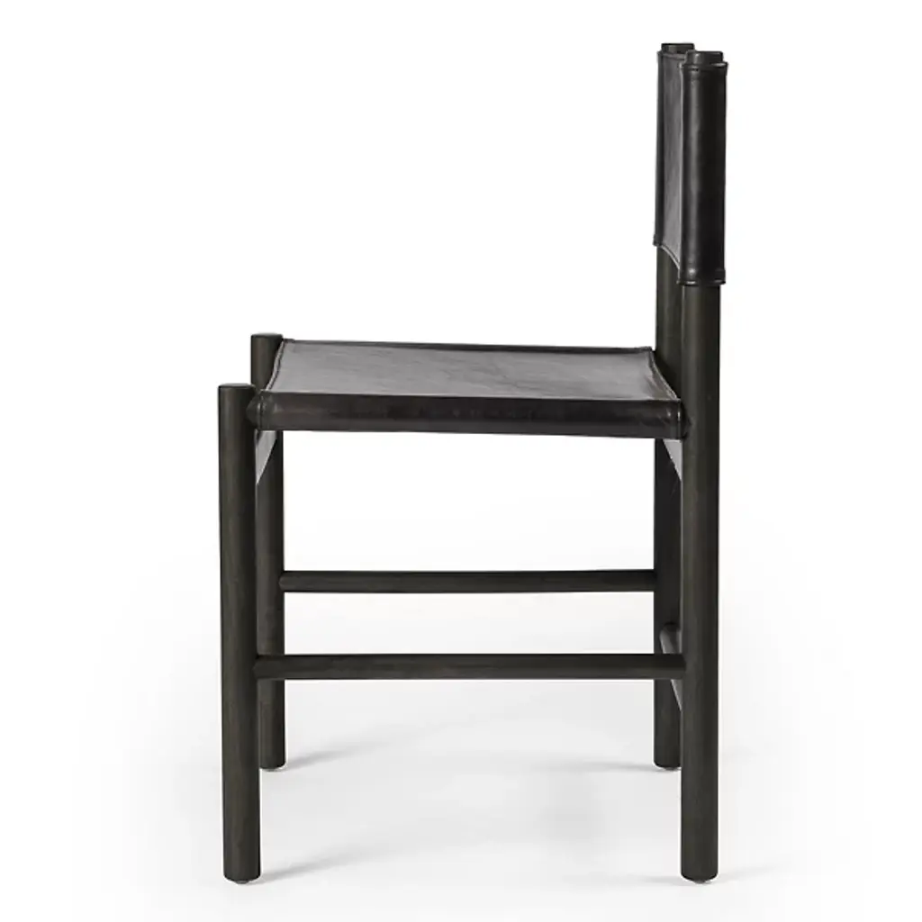 The Kena Dining Chair from Four Hands takes its inspiration from vintage chairs. Its frame is crafted from solid parawood and consists of straight lines and angles for a classic aesthetic. The sling-style seating is made of exclusive top-grain leather, providing both luxurious comfort and enduring durability. Comfortable yet artisanal, this piece is ideal for any occasion, from intimate family dinners to lavish gatherings.