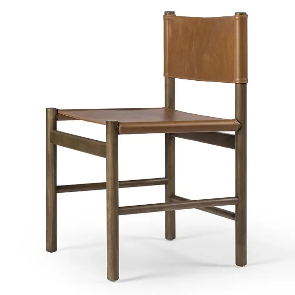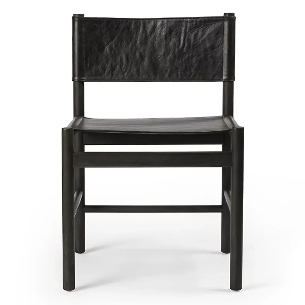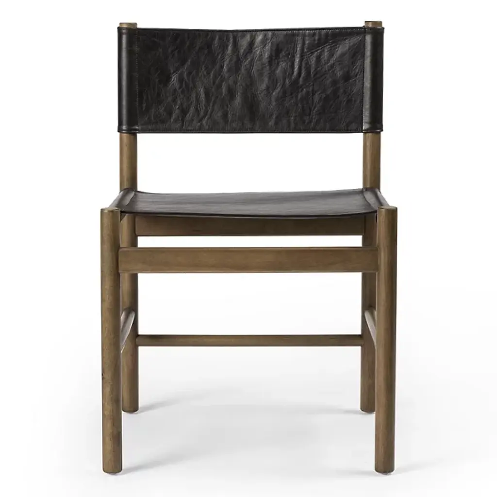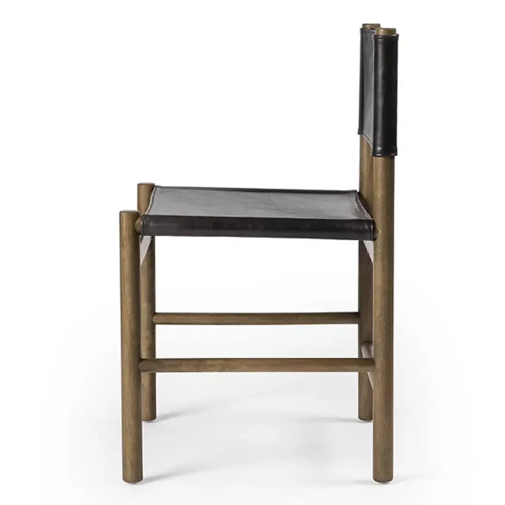 The Kena Dining Chair from Four Hands takes its inspiration from vintage chairs. Its frame is crafted from solid parawood and consists of straight lines and angles for a classic aesthetic. The sling-style seating is made of exclusive top-grain leather, providing both luxurious comfort and enduring durability. Comfortable yet artisanal, this piece is ideal for any occasion, from intimate family dinners to lavish gatherings.