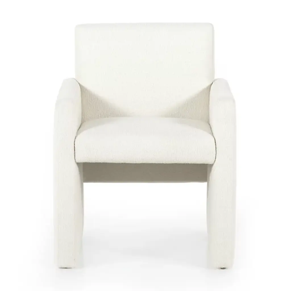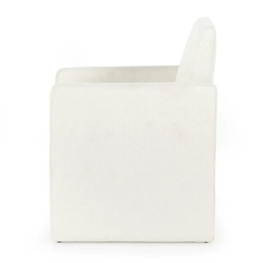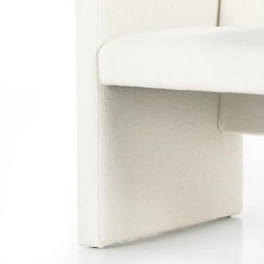 Full of character and charm, the Kima Dining Chair is presented by Four Hands. It features a voluminous shape with a tall scale and high-performance cream-colored fabric, which is soft and resistant to stains, perfect for high-traffic situations like a fine restaurant or in the VIP lounge. When you are in search of an elevated style for luxury dining locales and more, the Kima Dining Chair will provide the perfect solution.