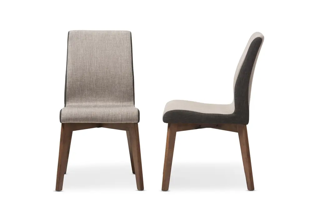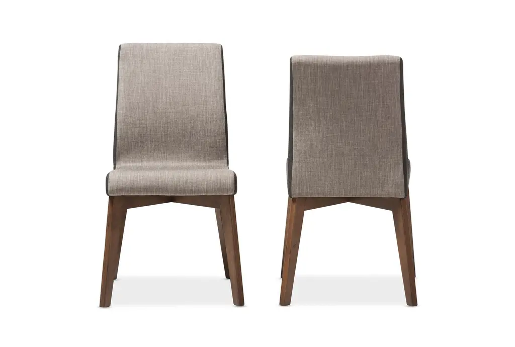 Kimmy Beige + Brown Fabric Dining Chair Set Of 2 | Armless