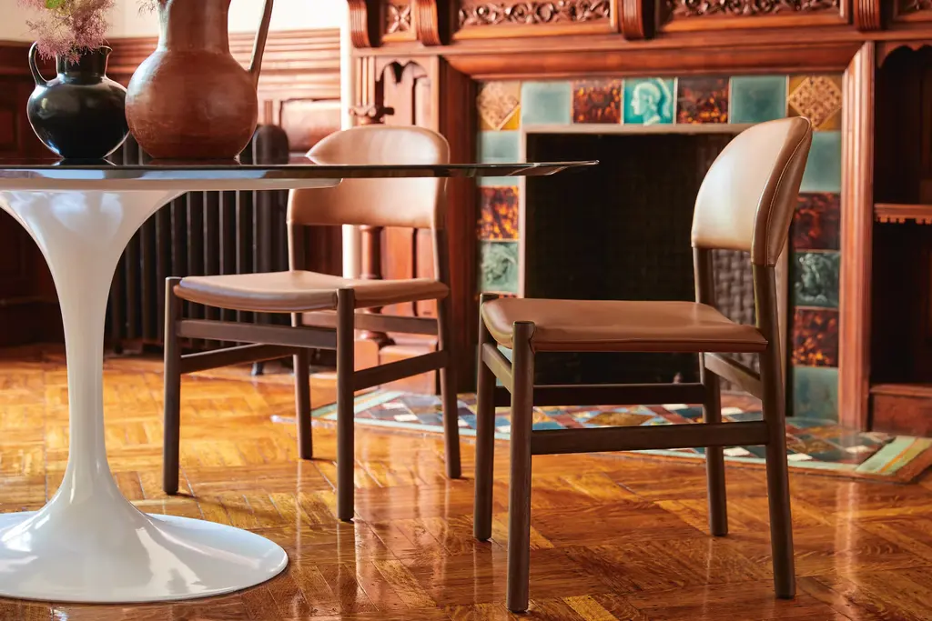 A comfortable dining chair should welcome you like an old friend - with open arms. The Kin Chair was designed with this generosity in mind. It features a seat and seatback upholstered in buttery Raise full-grain semi aniline leather from Italy while its curved form is molded to fit the organic curves of the body. The leather is finished with beautifully stitched exposed seams, which illustrate its craftsmanship and reference the classic sling chair that originally inspired Danish designer Chris Liljenberg Halstrøm.